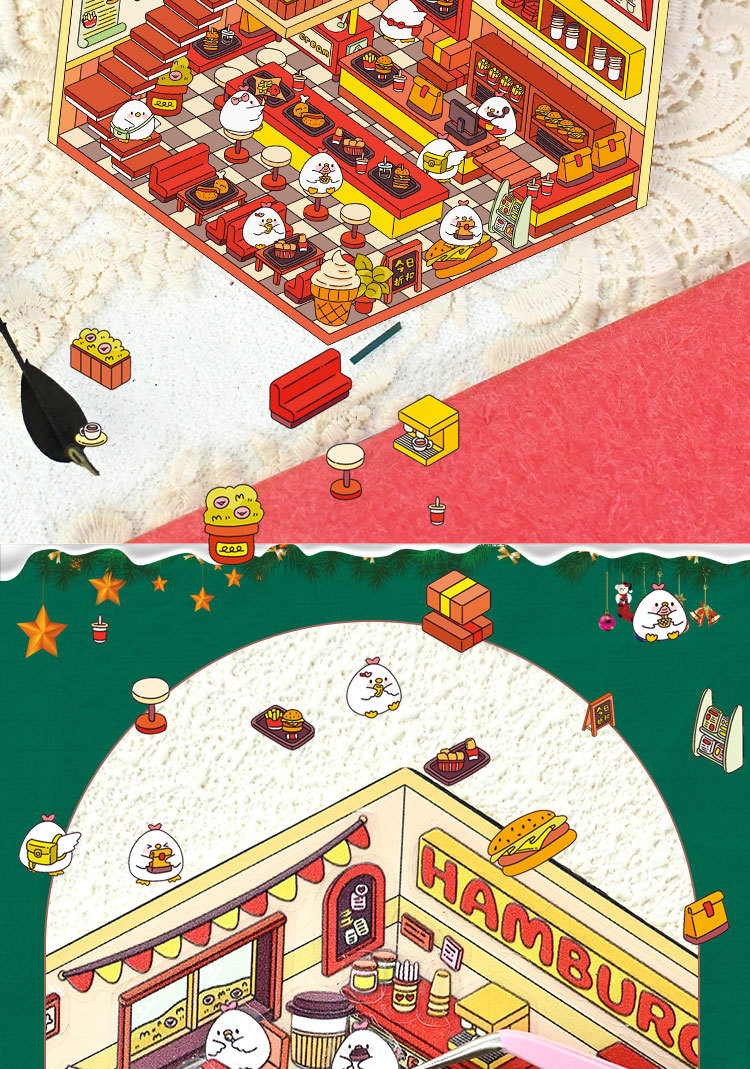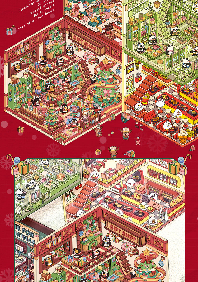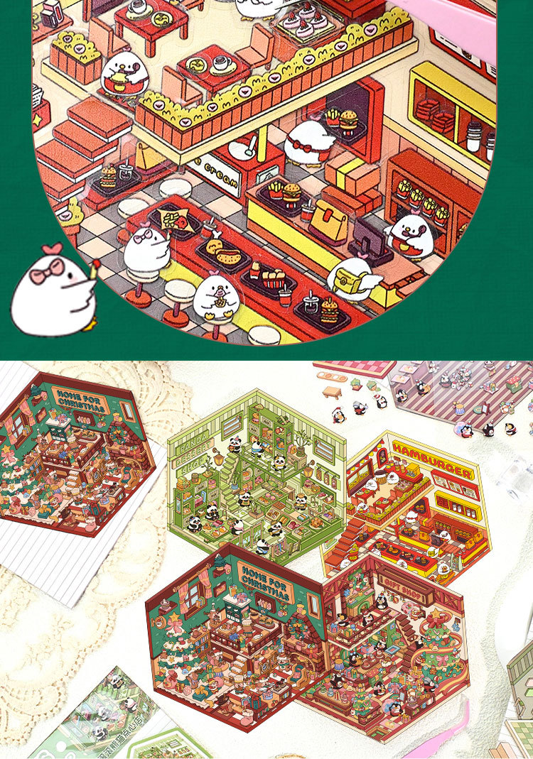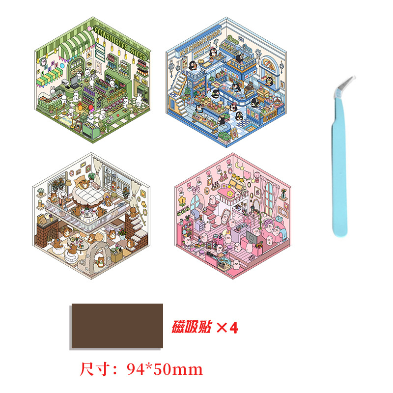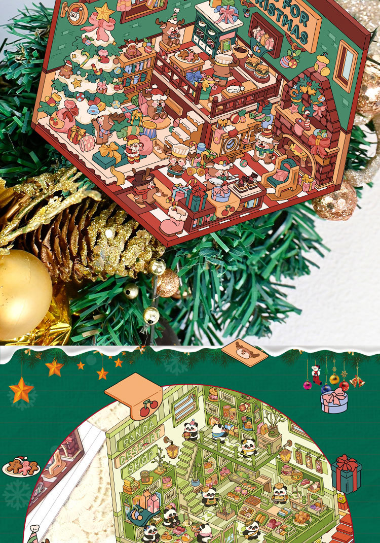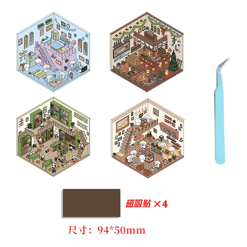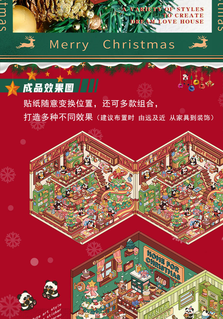 Senyou 3.0 크리스마스 저장 풍경 캐빈 스티커 diy 스테레오 마이크로 장면 3D 스티커를위한 국경 간 스페셜스토어 가기