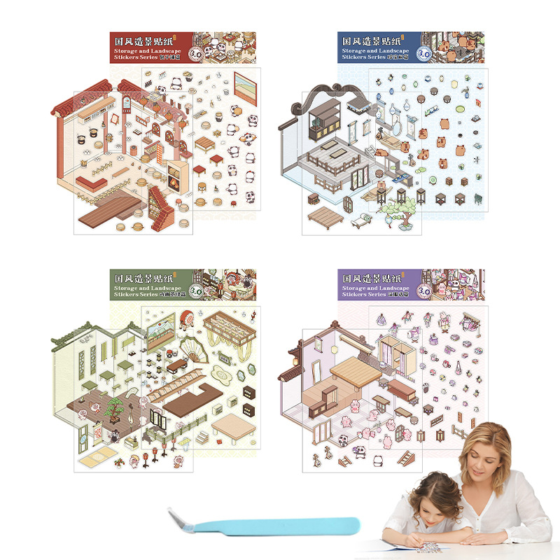 Senyou 3.0 크리스마스 저장 풍경 캐빈 스티커 diy 스테레오 마이크로 장면 3D 스티커를위한 국경 간 스페셜