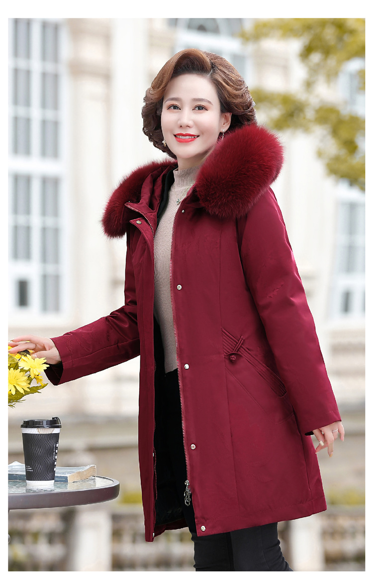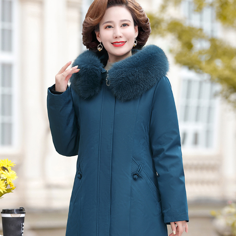 카운터 다운 재킷 여성 204 새로운 어머니의 세련된 서양식 중간 길이의 무릎 길이 두꺼운 기모 따뜻한 재킷