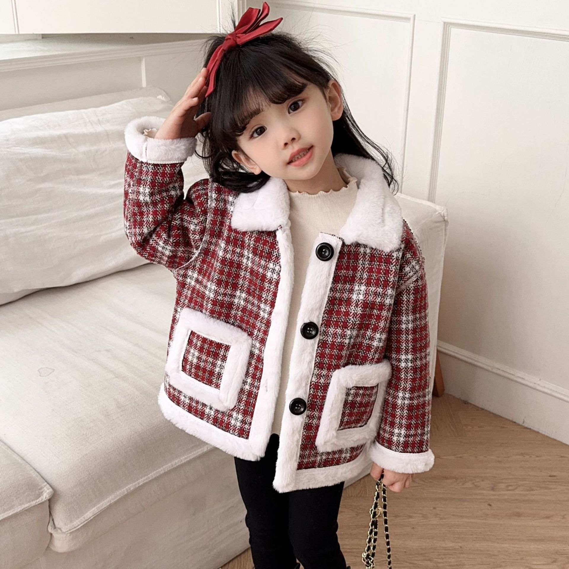 어린이 아기 기모 가을과 겨울 새로운 여성의 아기 샤넬 스타일 따뜻한 재킷 한국 스타일 어린이를위한 유행스토어 가기