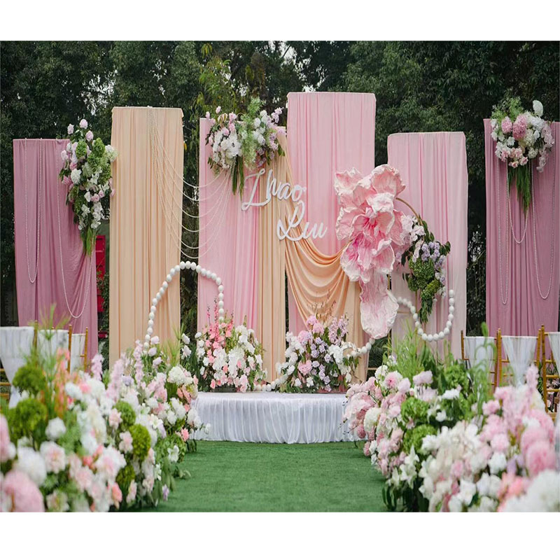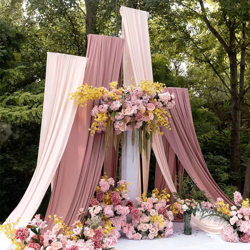 결혼식 우유 실크 탄성 직물 웨딩 탄성 거즈 커튼 탄성 배경 천 커튼 무대 한국 스타일 장식