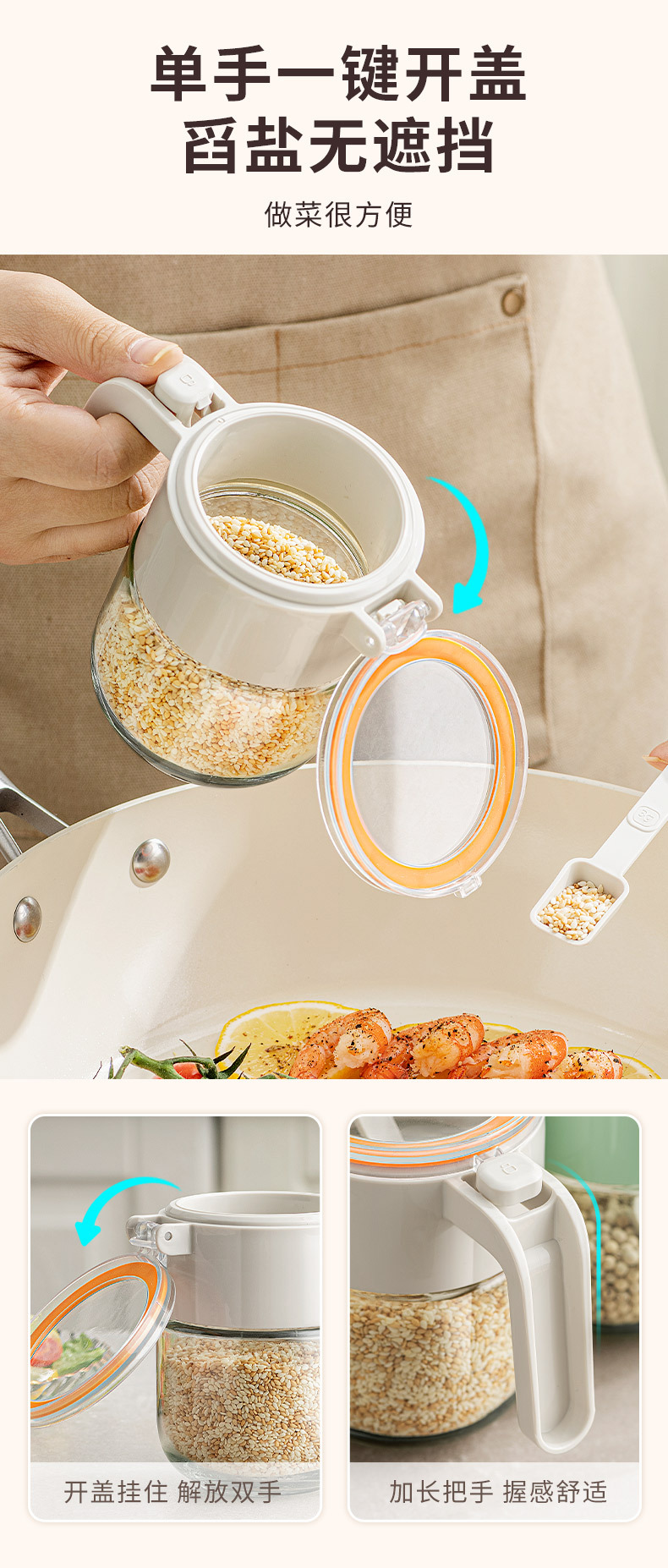 가벼운 고급 가정용 양념 항아리 조미료 상자 주방 고급 조미료 병 소금 항아리 조미료 숟가락 밀봉 된 습기 방지 보관 상자가있는 양념