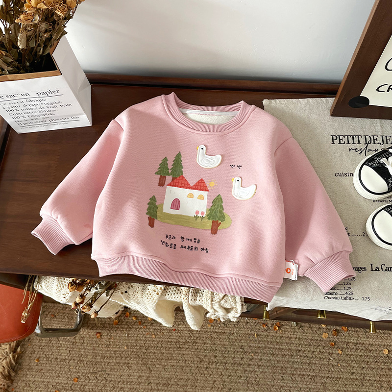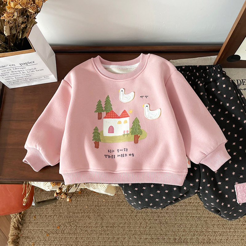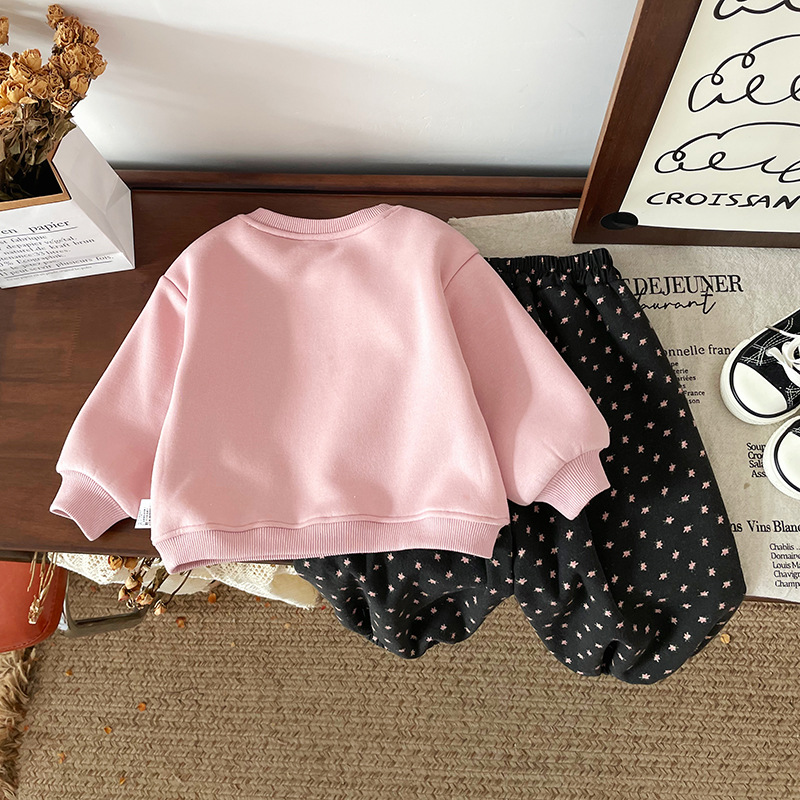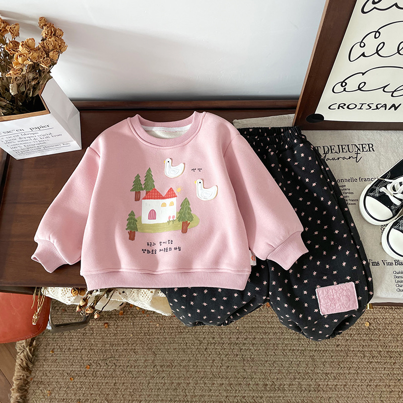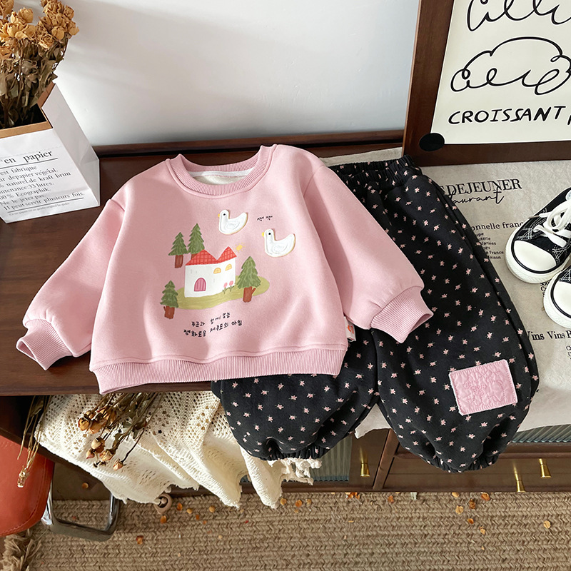 어린이 기모 두꺼운 어린이 세트 2024 가을/겨울 어린이 세트 여자 기모 땀 기모 어린이 바지 2 피스 세트