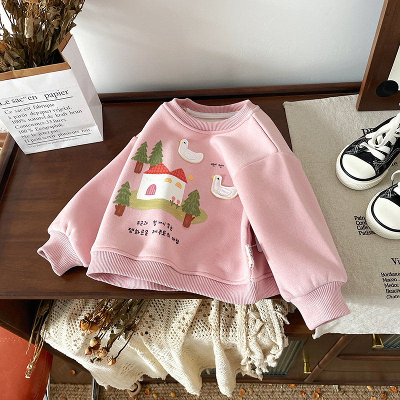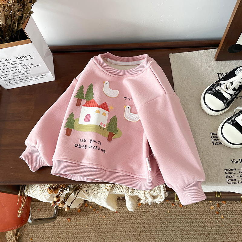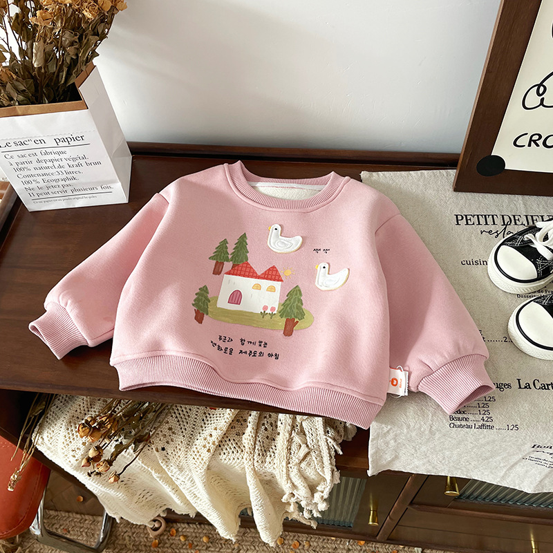 어린이 기모 두꺼운 어린이 세트 2024 가을/겨울 어린이 세트 여자 기모 땀 기모 어린이 바지 2 피스 세트스토어 가기