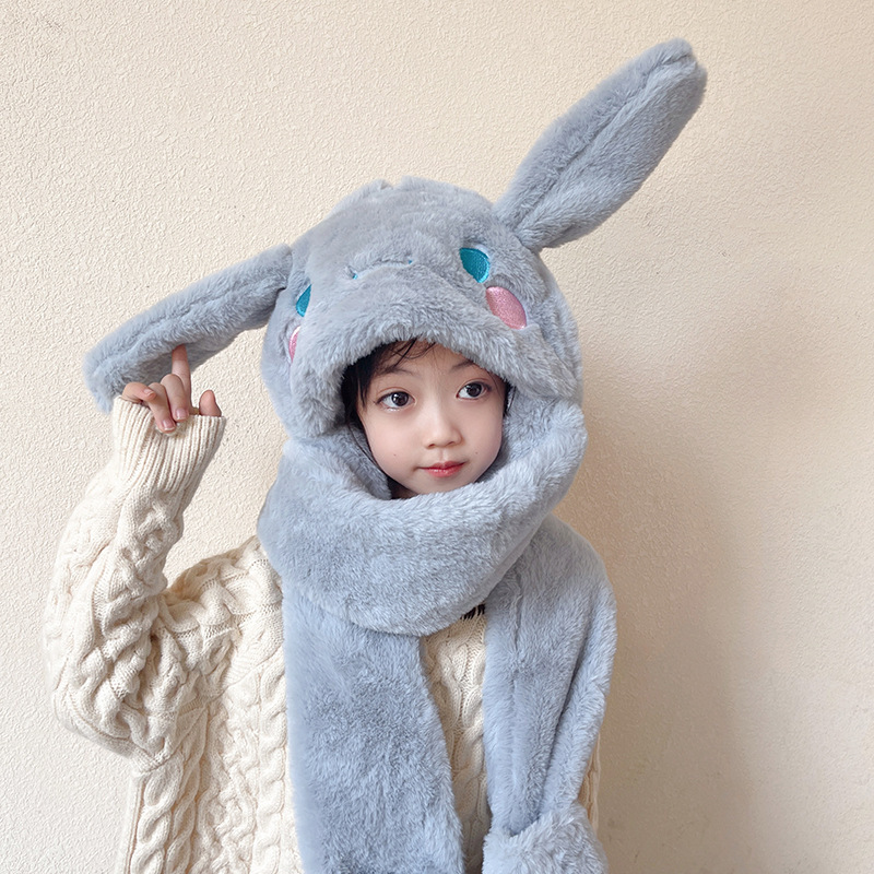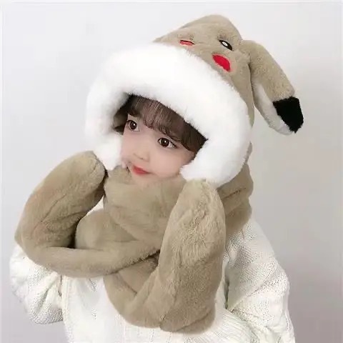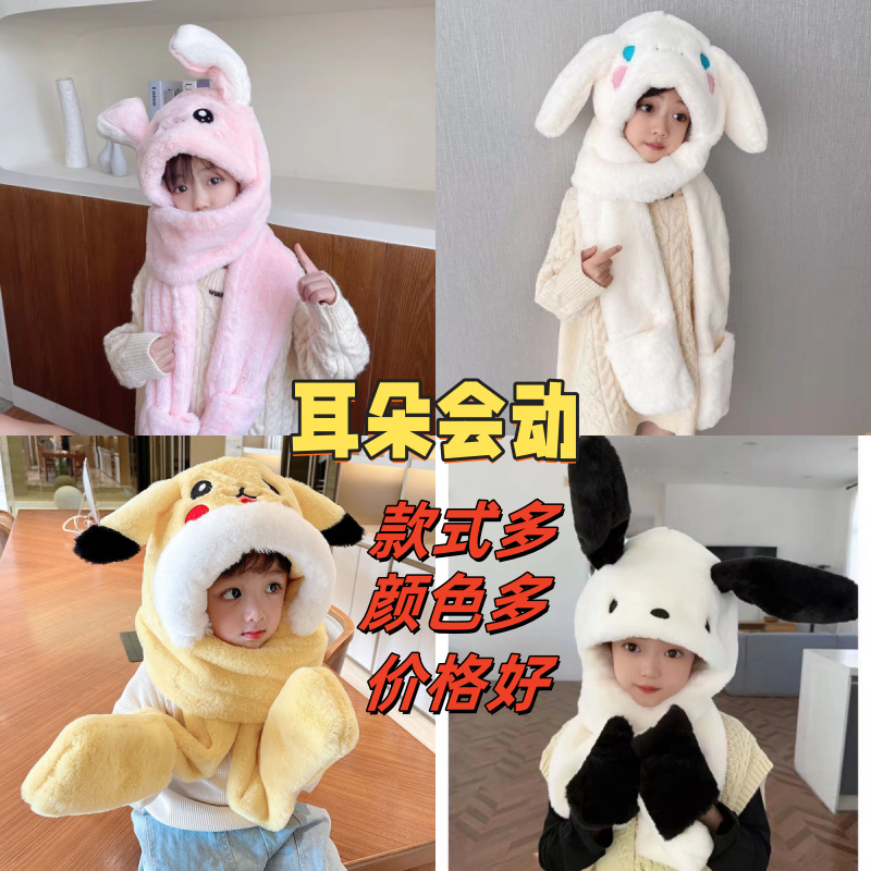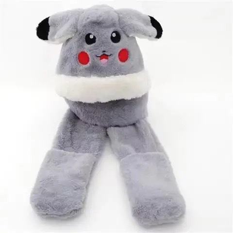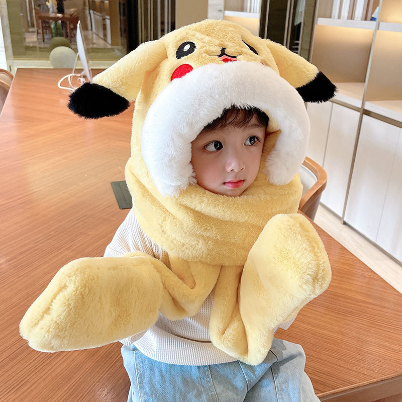 어린이 피카추 유구이 개 모자 원피스 장갑 스카프 3 피스 세트 기모 두꺼운 귀 보호 귀 이동 모자