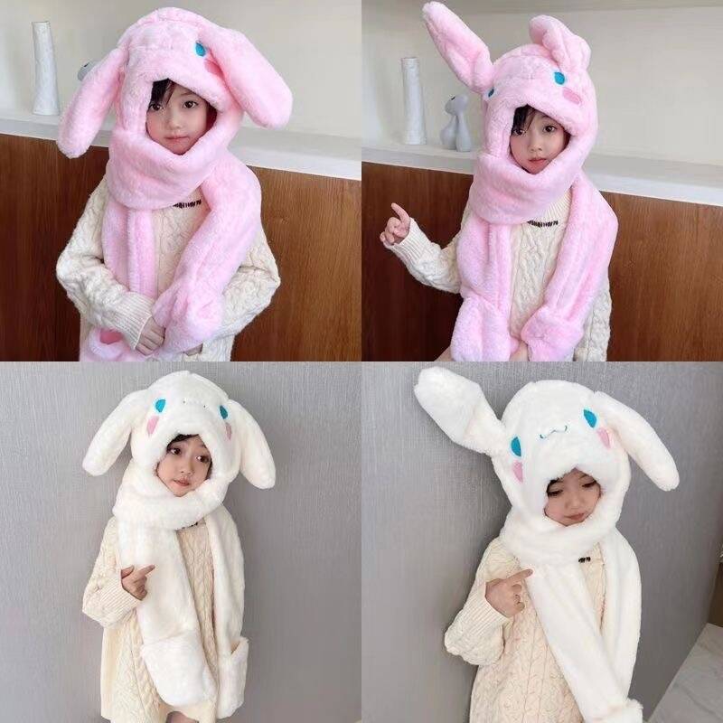 어린이 피카추 유구이 개 모자 원피스 장갑 스카프 3 피스 세트 기모 두꺼운 귀 보호 귀 이동 모자스토어 가기