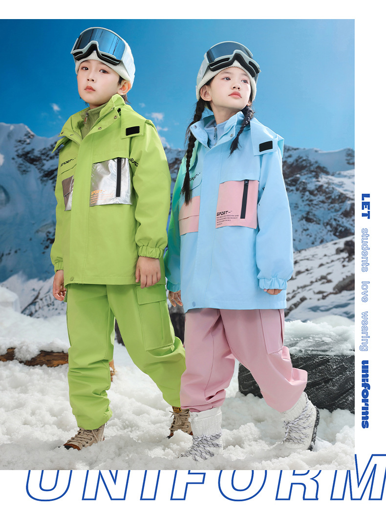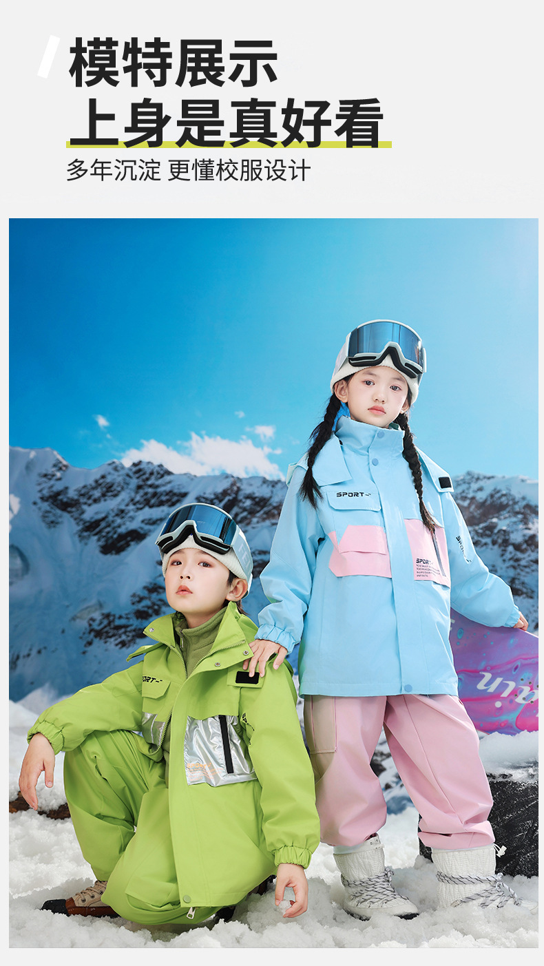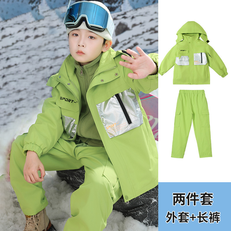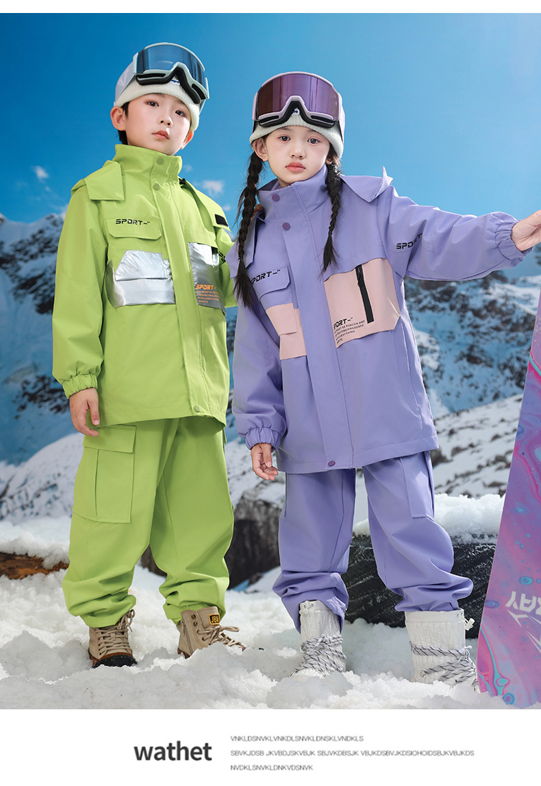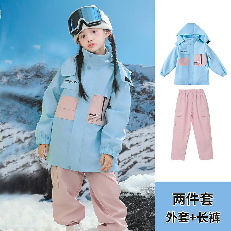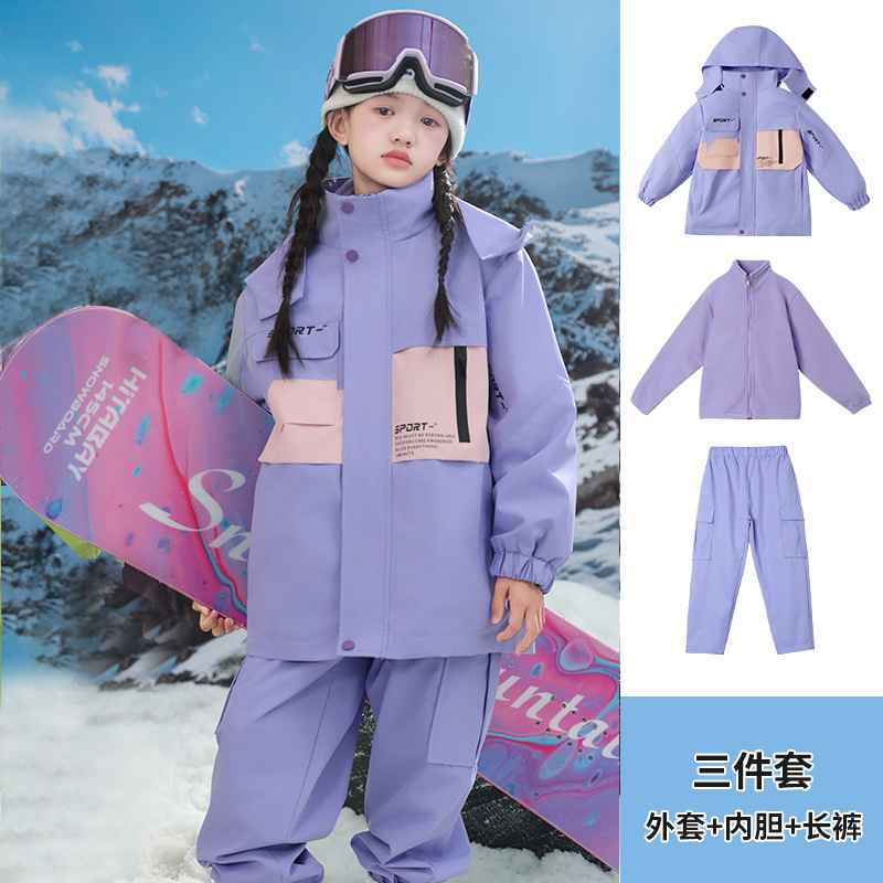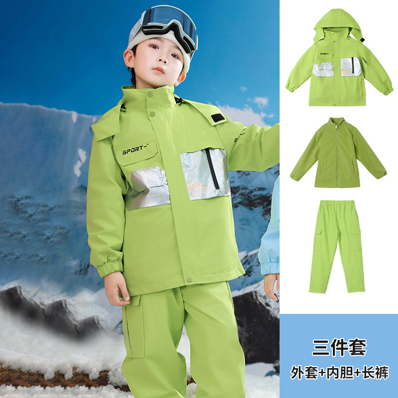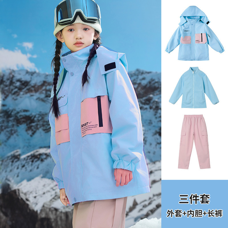 남학생과 여학생을위한 새로운 어린이 스키 세트 초등학생을위한 따뜻한 듀폰 3 장 충전 옷을 두껍게 만들었습니다.스토어 가기