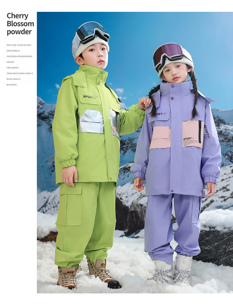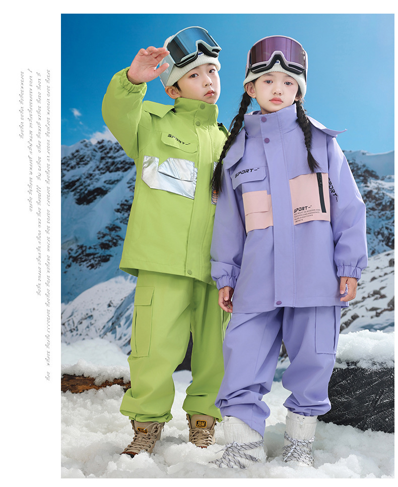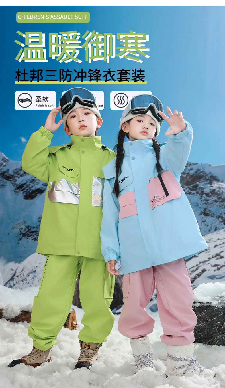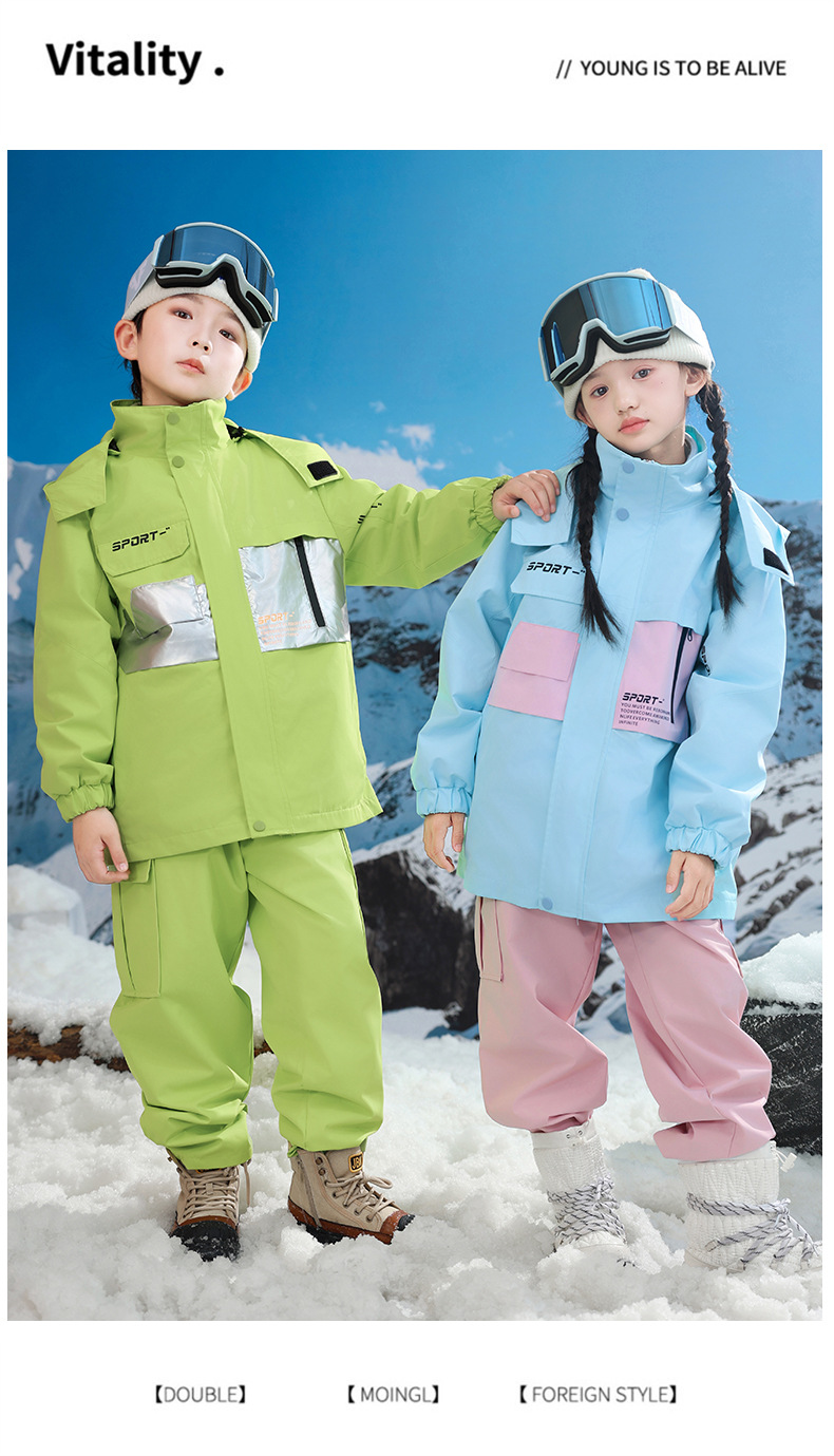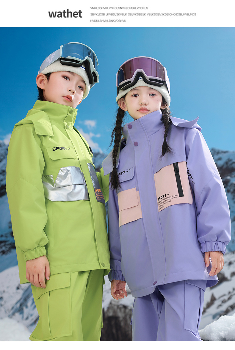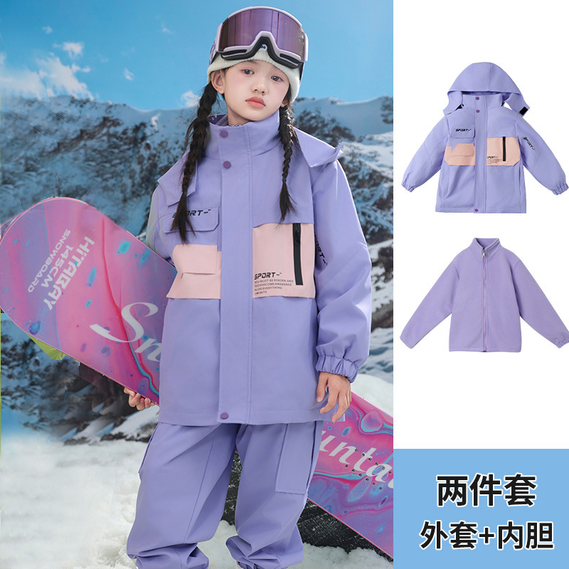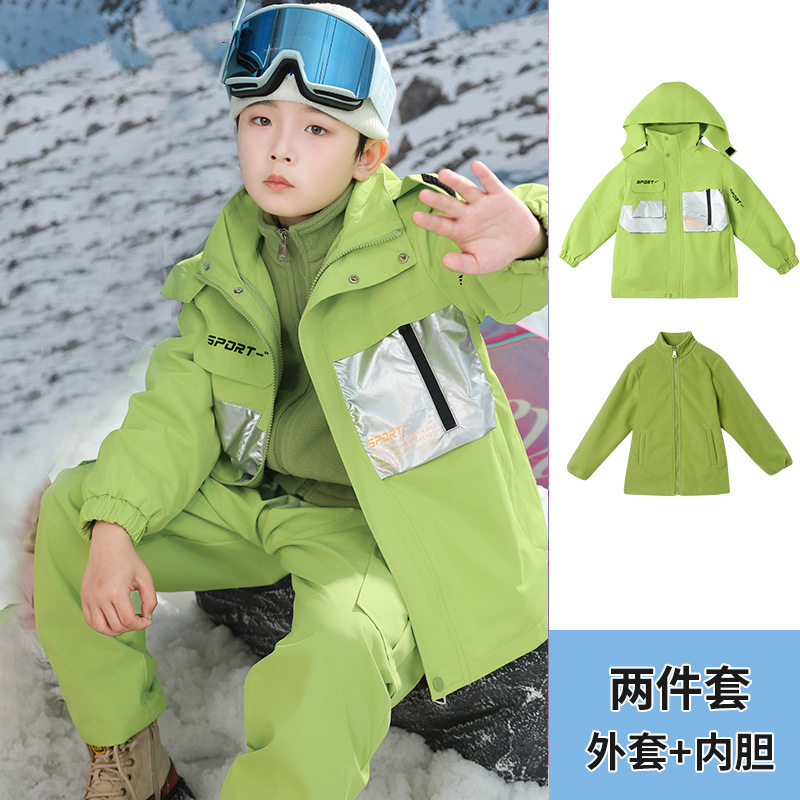 남학생과 여학생을위한 새로운 어린이 스키 세트 초등학생을위한 따뜻한 듀폰 3 장 충전 옷을 두껍게 만들었습니다.스토어 가기