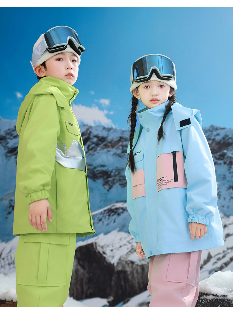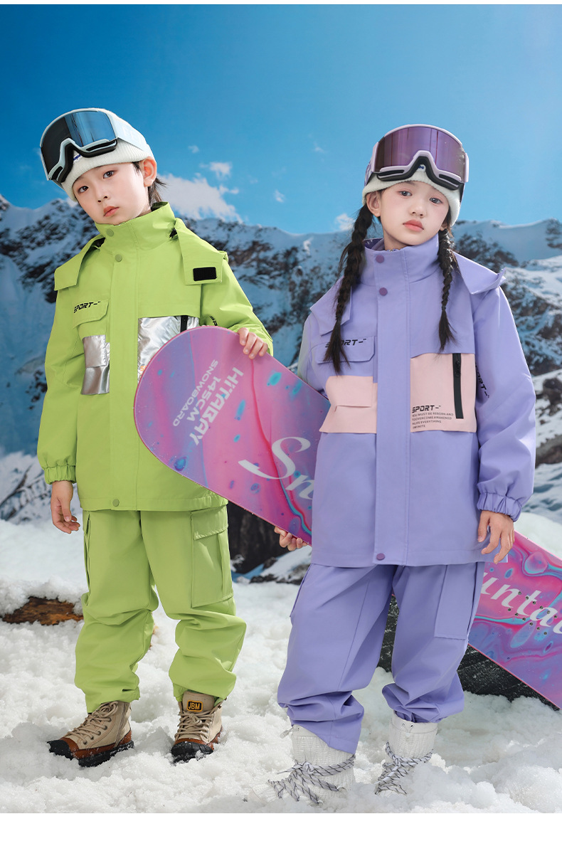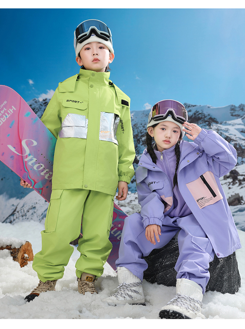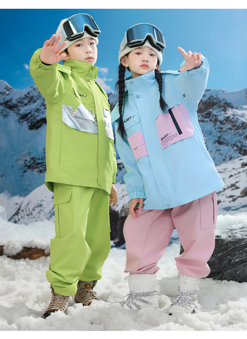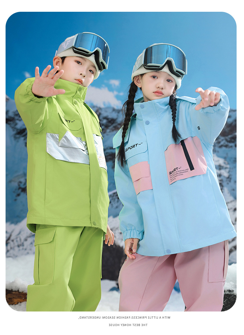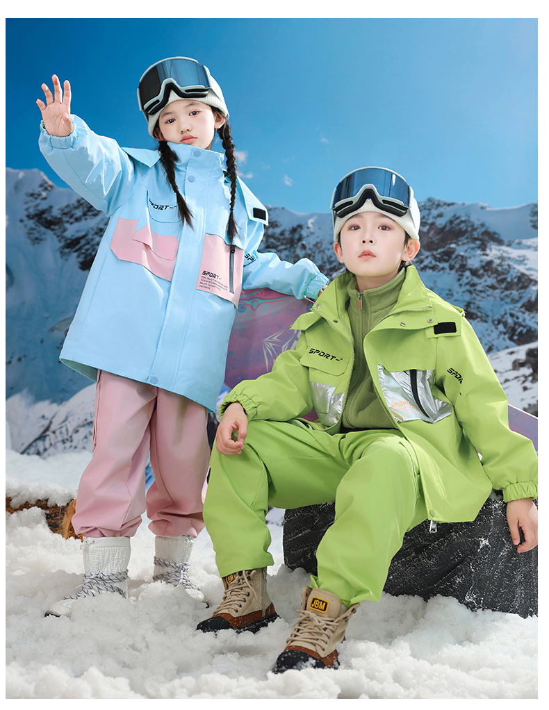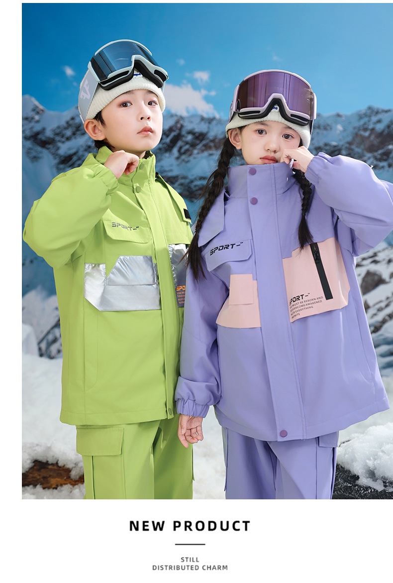 남학생과 여학생을위한 새로운 어린이 스키 세트 초등학생을위한 따뜻한 듀폰 3 장 충전 옷을 두껍게 만들었습니다.스토어 가기