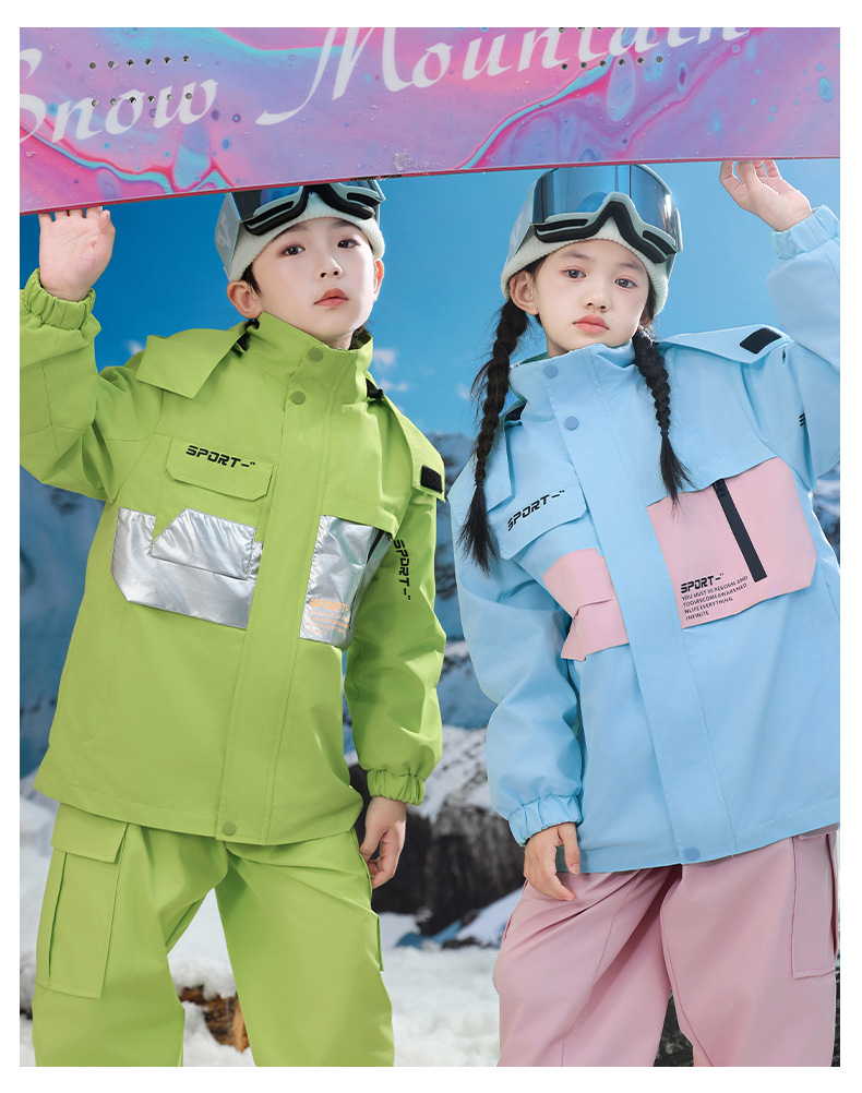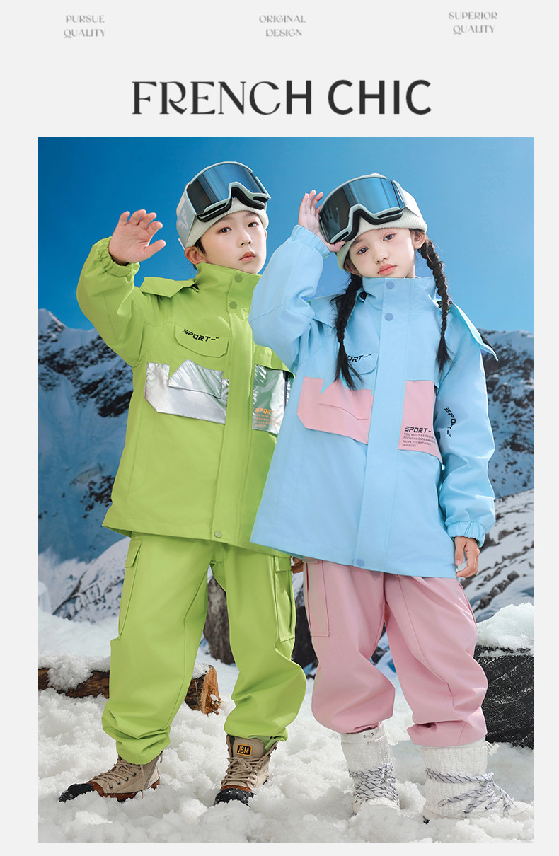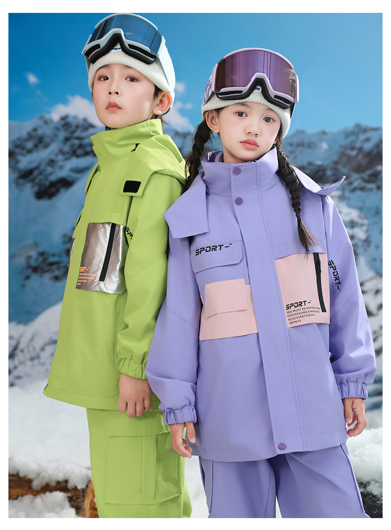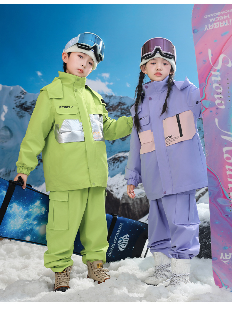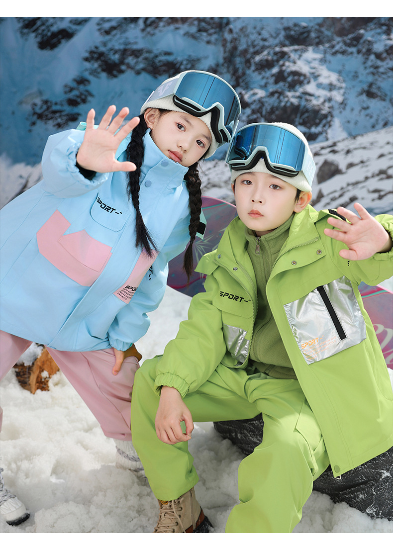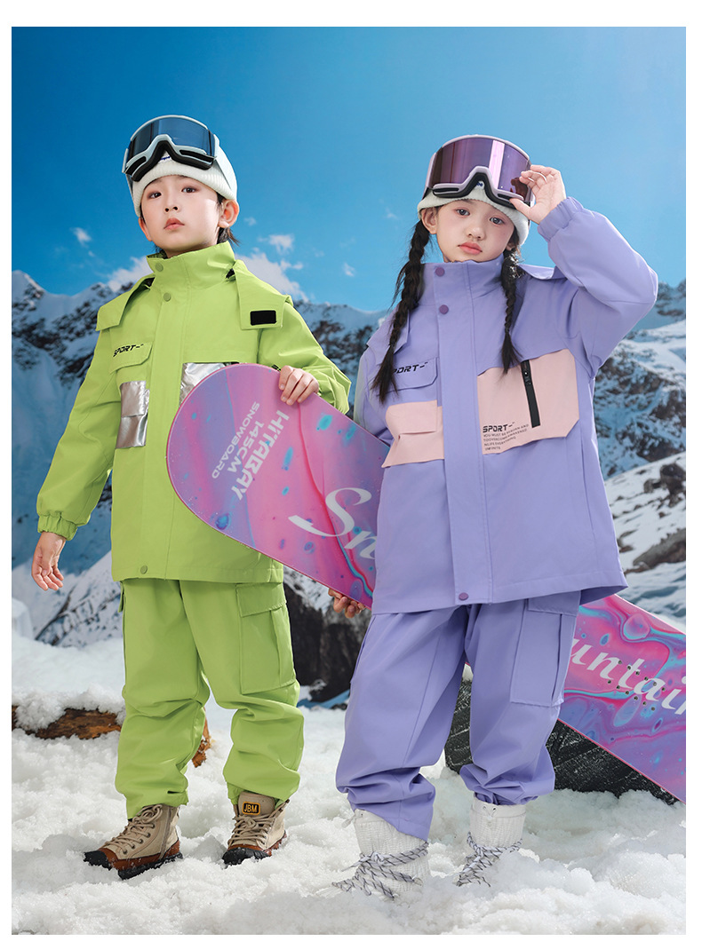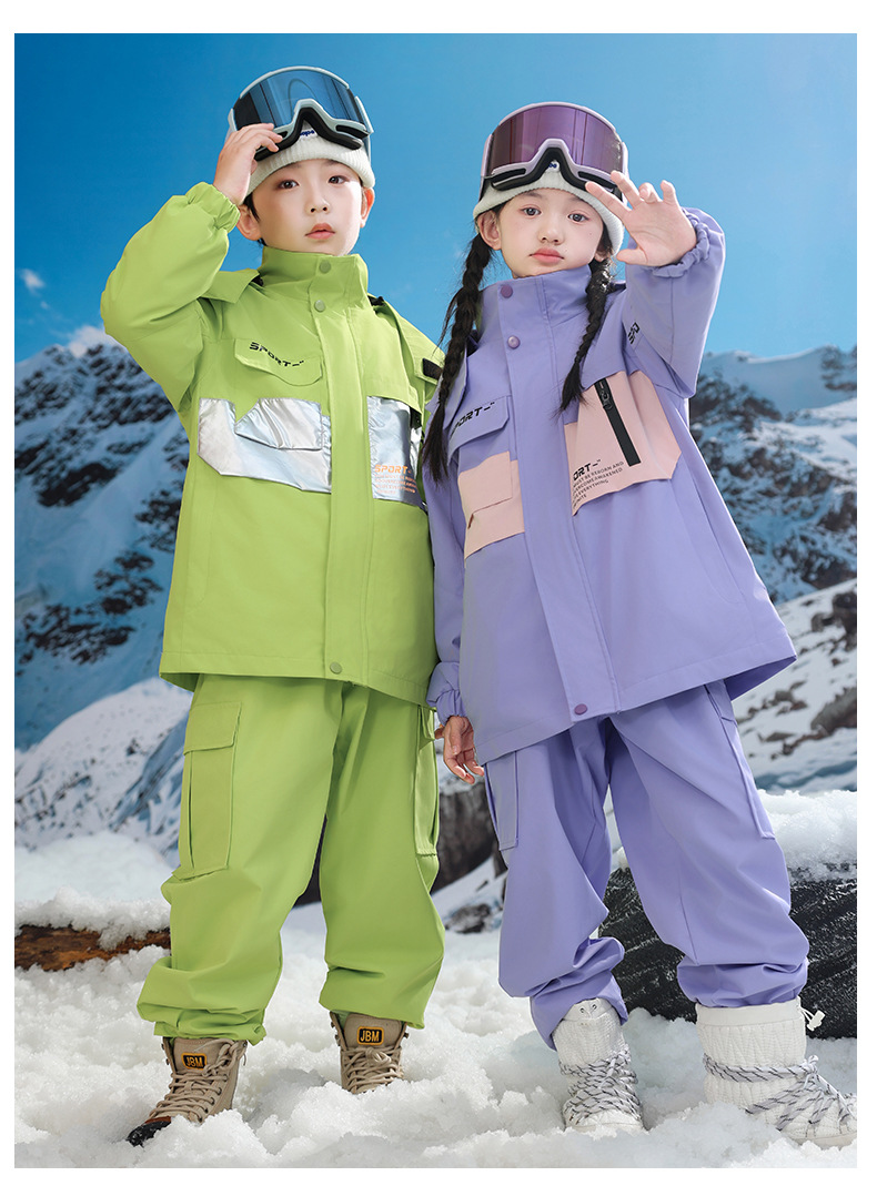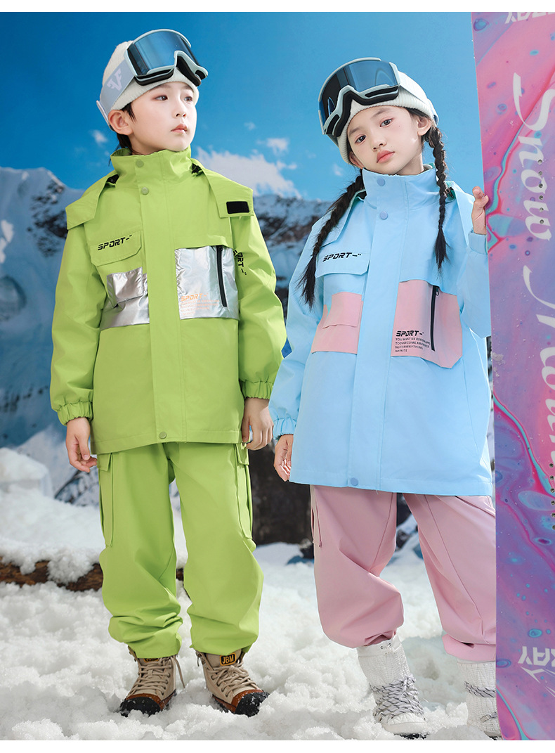 남학생과 여학생을위한 새로운 어린이 스키 세트 초등학생을위한 따뜻한 듀폰 3 장 충전 옷을 두껍게 만들었습니다.스토어 가기