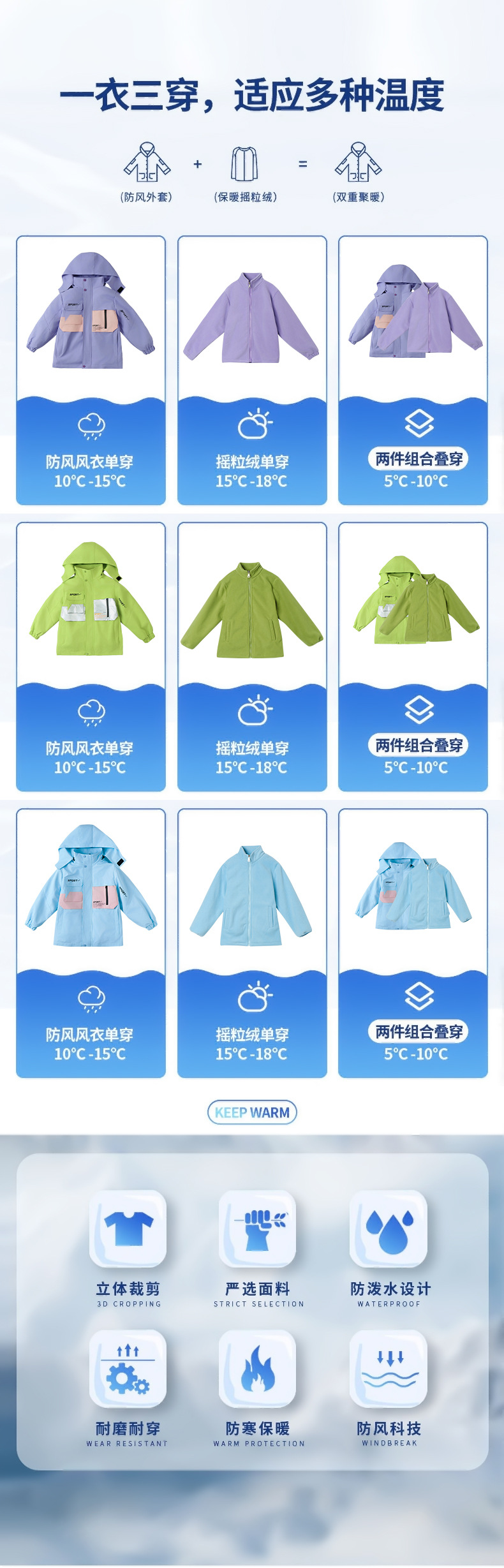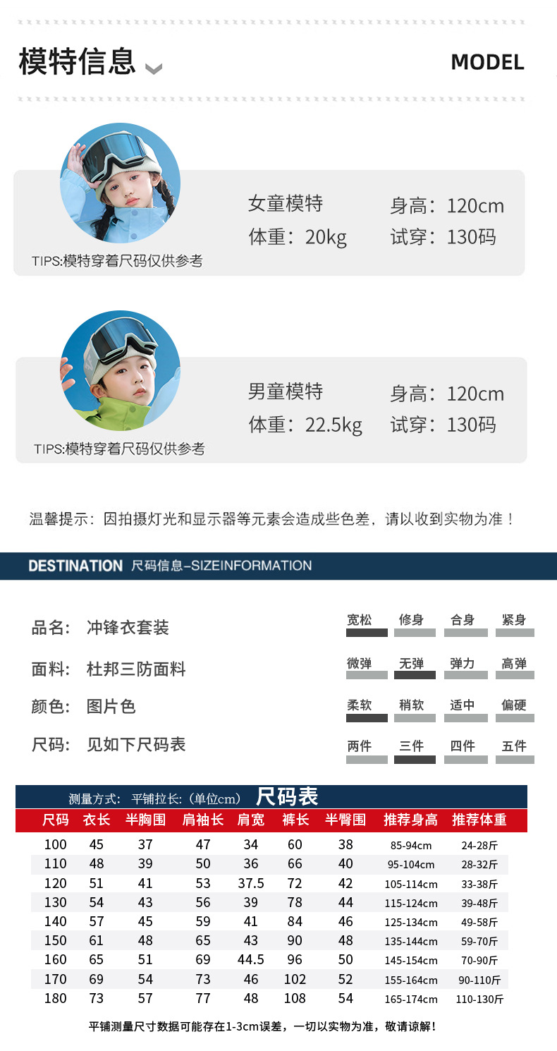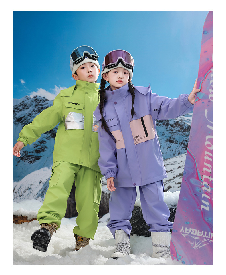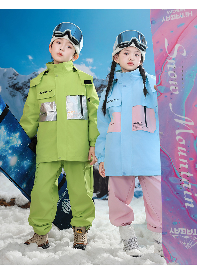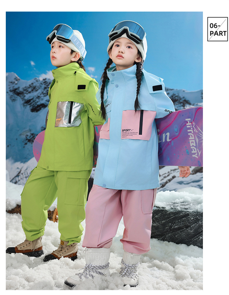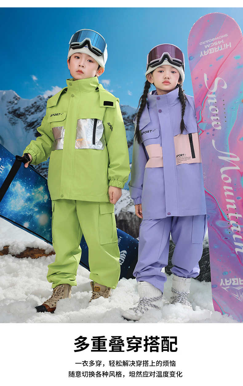 남학생과 여학생을위한 새로운 어린이 스키 세트 초등학생을위한 따뜻한 듀폰 3 장 충전 옷을 두껍게 만들었습니다.스토어 가기
