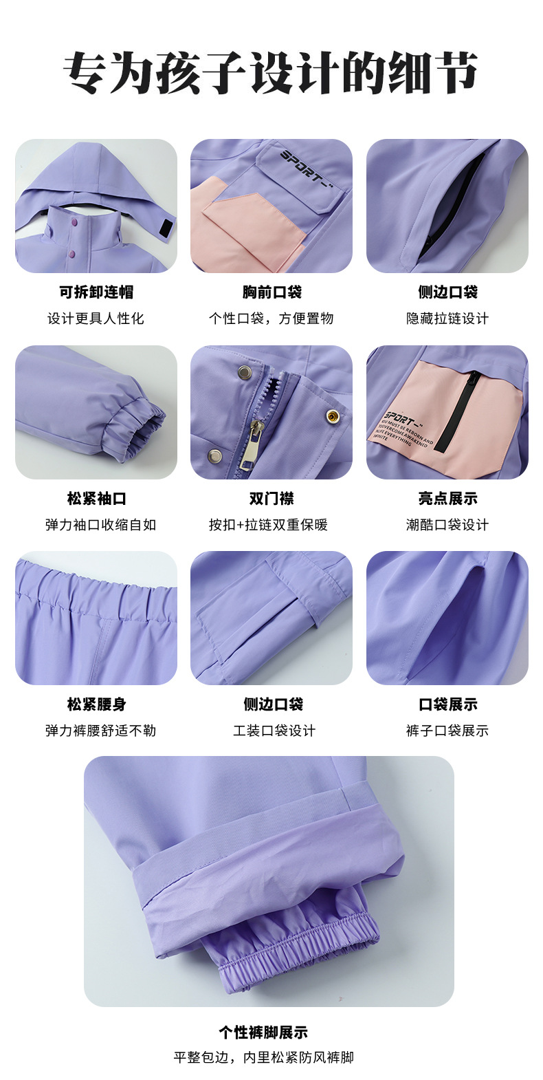 남학생과 여학생을위한 새로운 어린이 스키 세트 초등학생을위한 따뜻한 듀폰 3 장 충전 옷을 두껍게 만들었습니다.