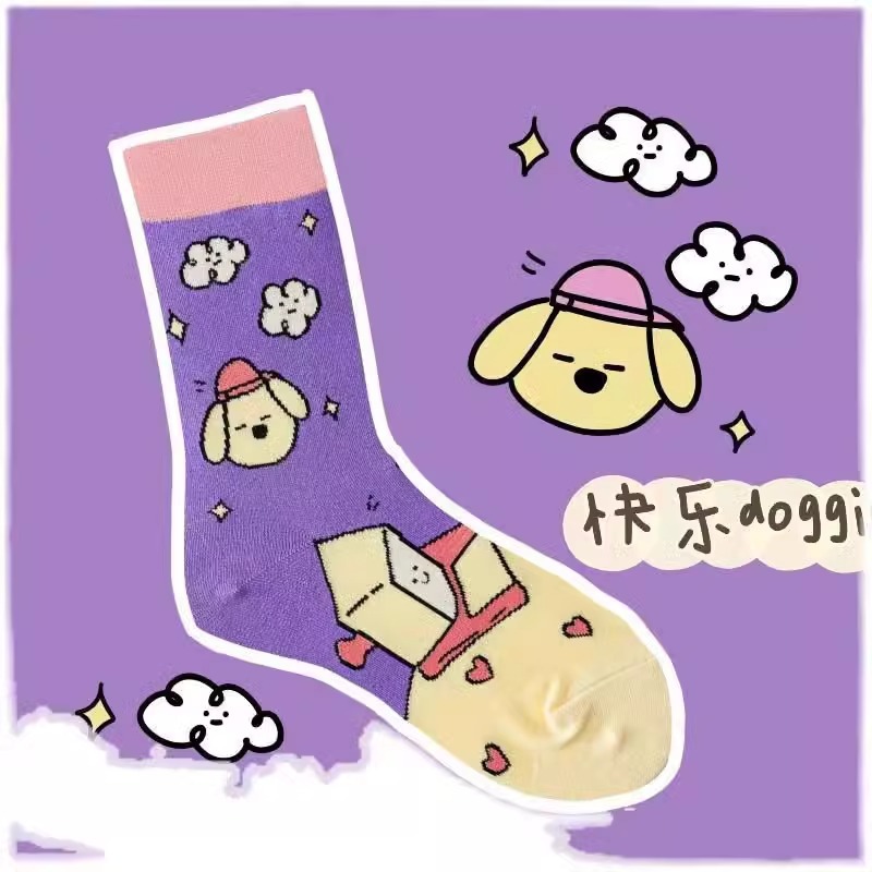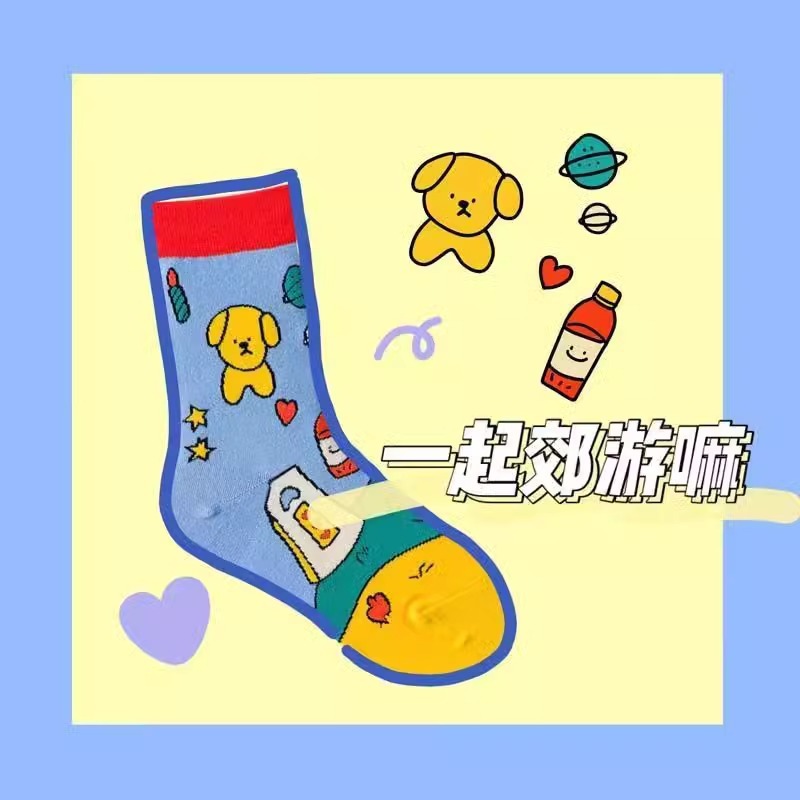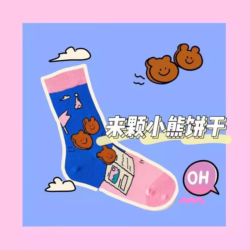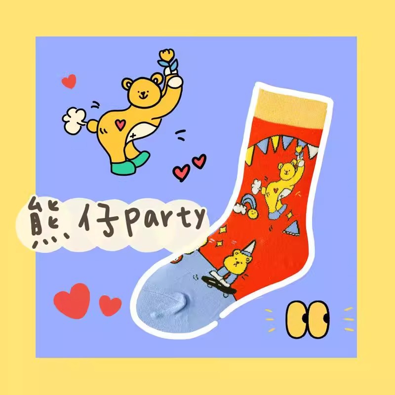 재미있는 동물원 나들이 곰 다채로운 색상 일치 창조적 인 만화 일러스트와 트렌디 한 학술 스타일 튜브 양말스토어 가기