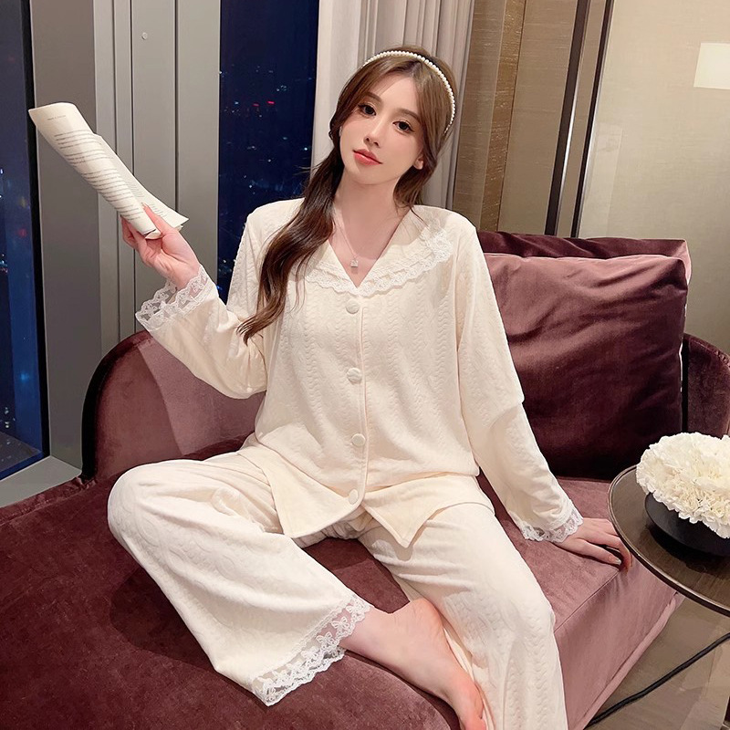 라이브 아일랜드 벨벳 파자마 여성의 가을과 겨울 따뜻한 광장 칼라 고급 벨벳 패션 젊은 아웃 두꺼운 홈 의류 도매스토어 가기
