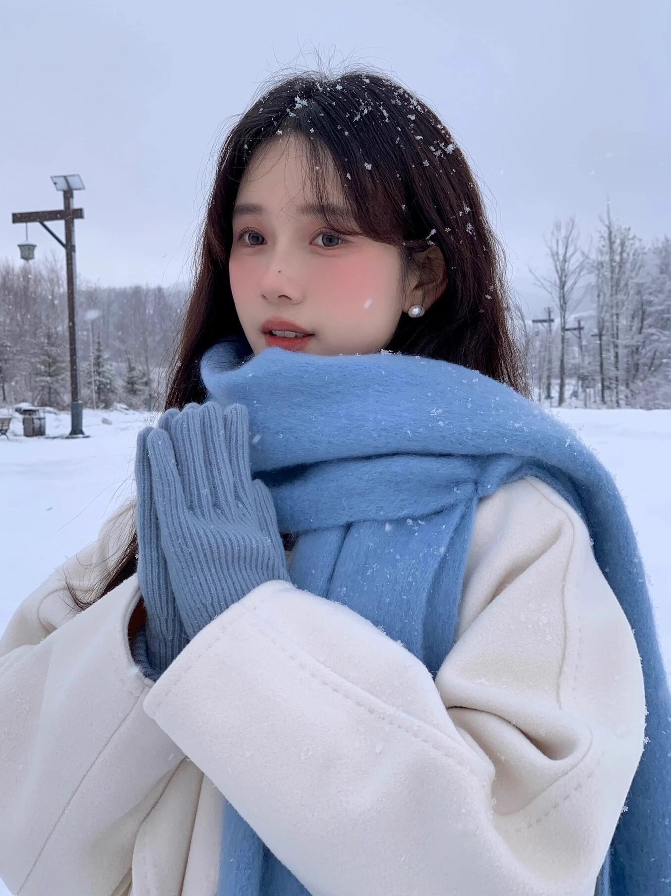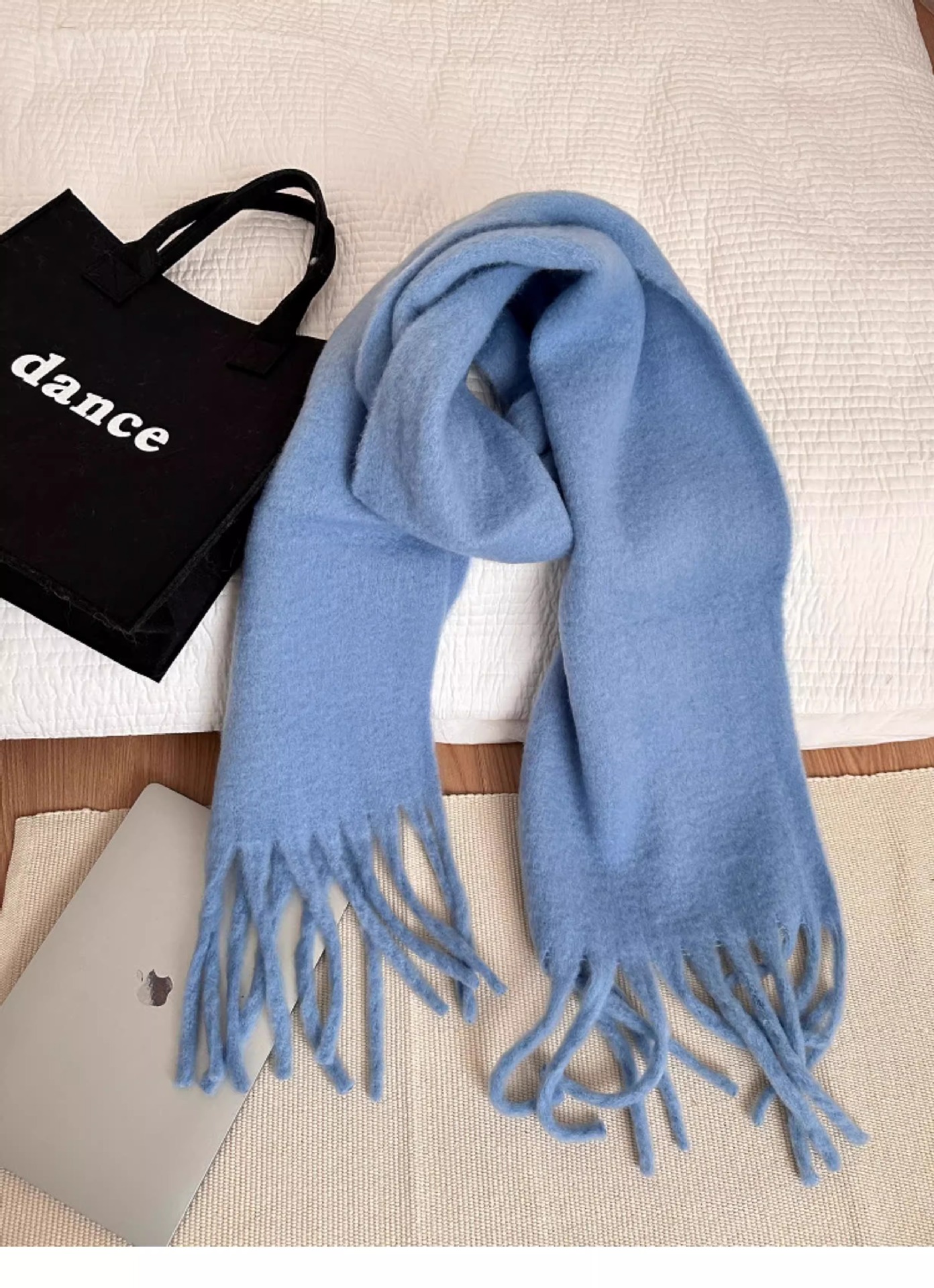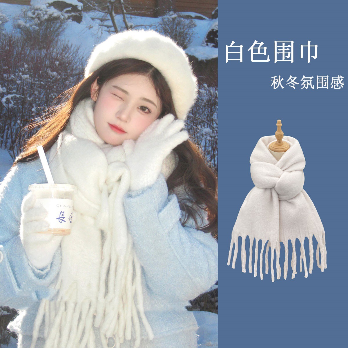 단색 분위기 스카프 소녀의 겨울 새 한국 스타일 학생 올매치 두꺼운 마카롱 컬러 화이트 스카프 트렌디스토어 가기