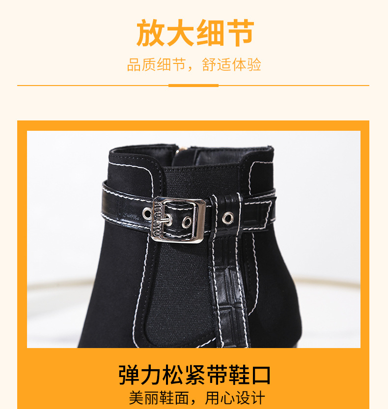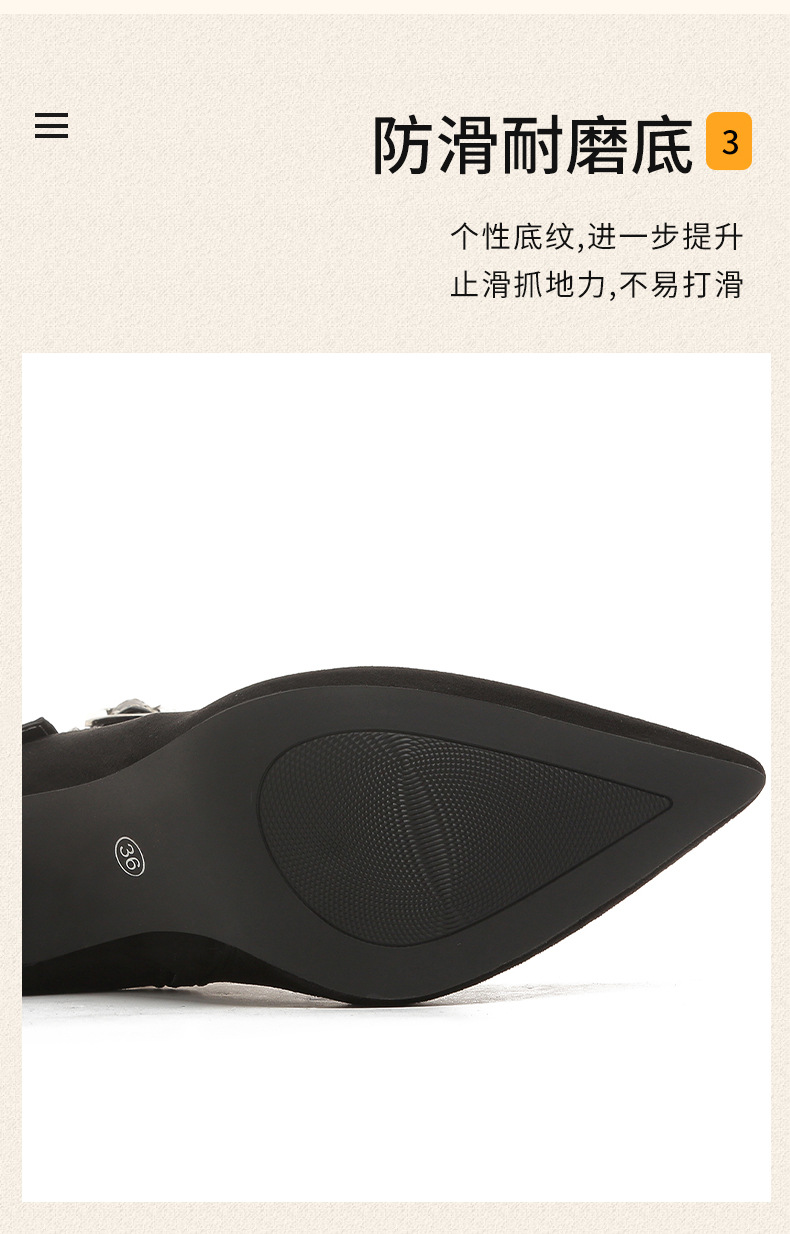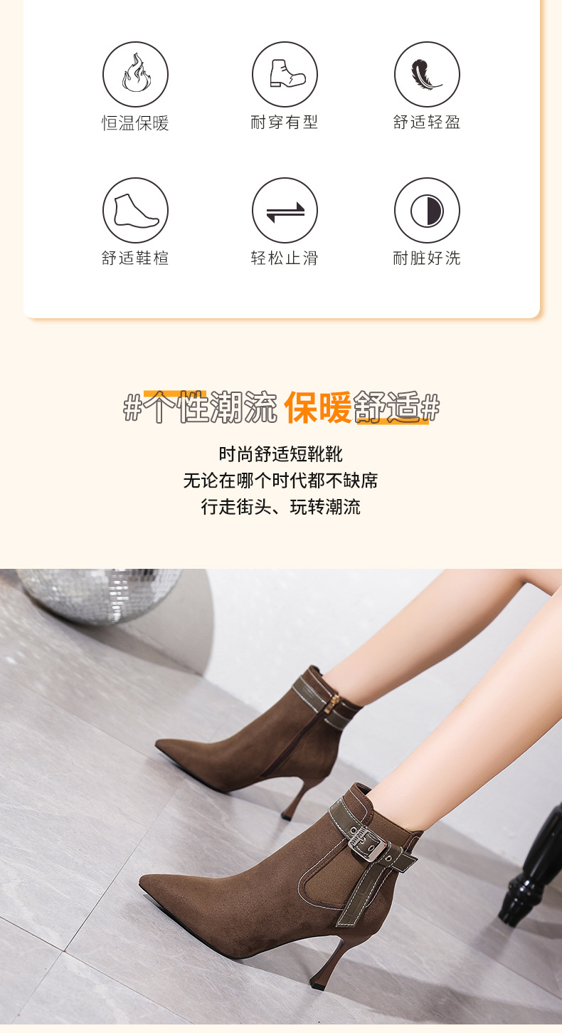 가을과 겨울 새로운 도착 벨트 버클 포인팅 부츠 여성용 섹시한 하이힐 우아한 슬리밍 사이드 지퍼 기모 패션 부츠스토어 가기