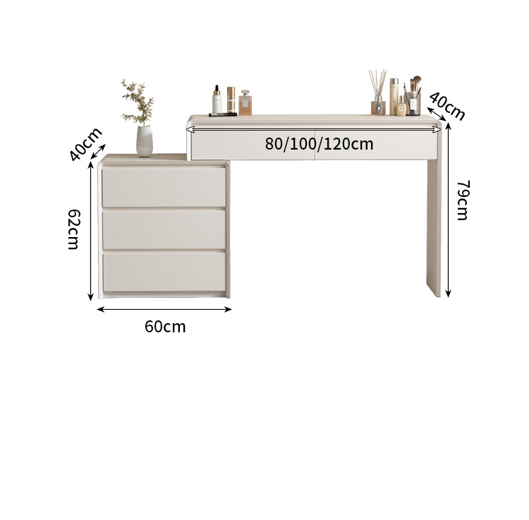 • 120cm 서랍장 + 80cm 화장대 + 화장거울 + 원형스툴 + 도어설치 + 바닥폭 40cm (보통)