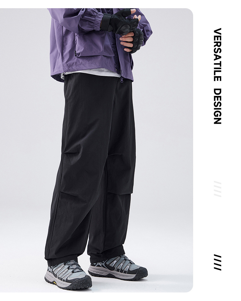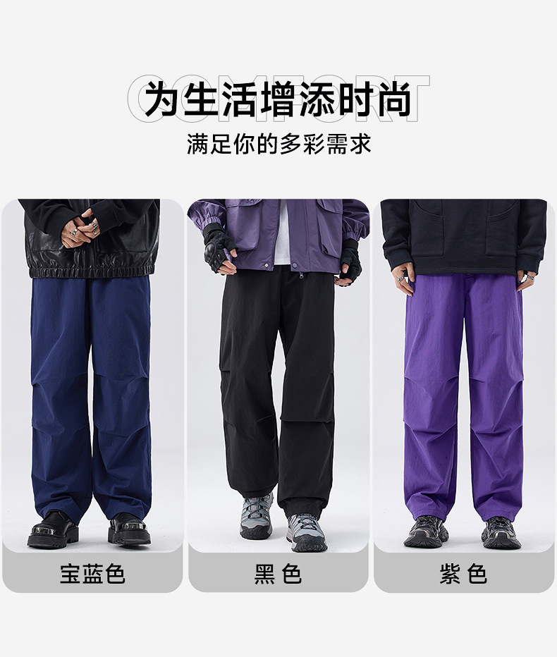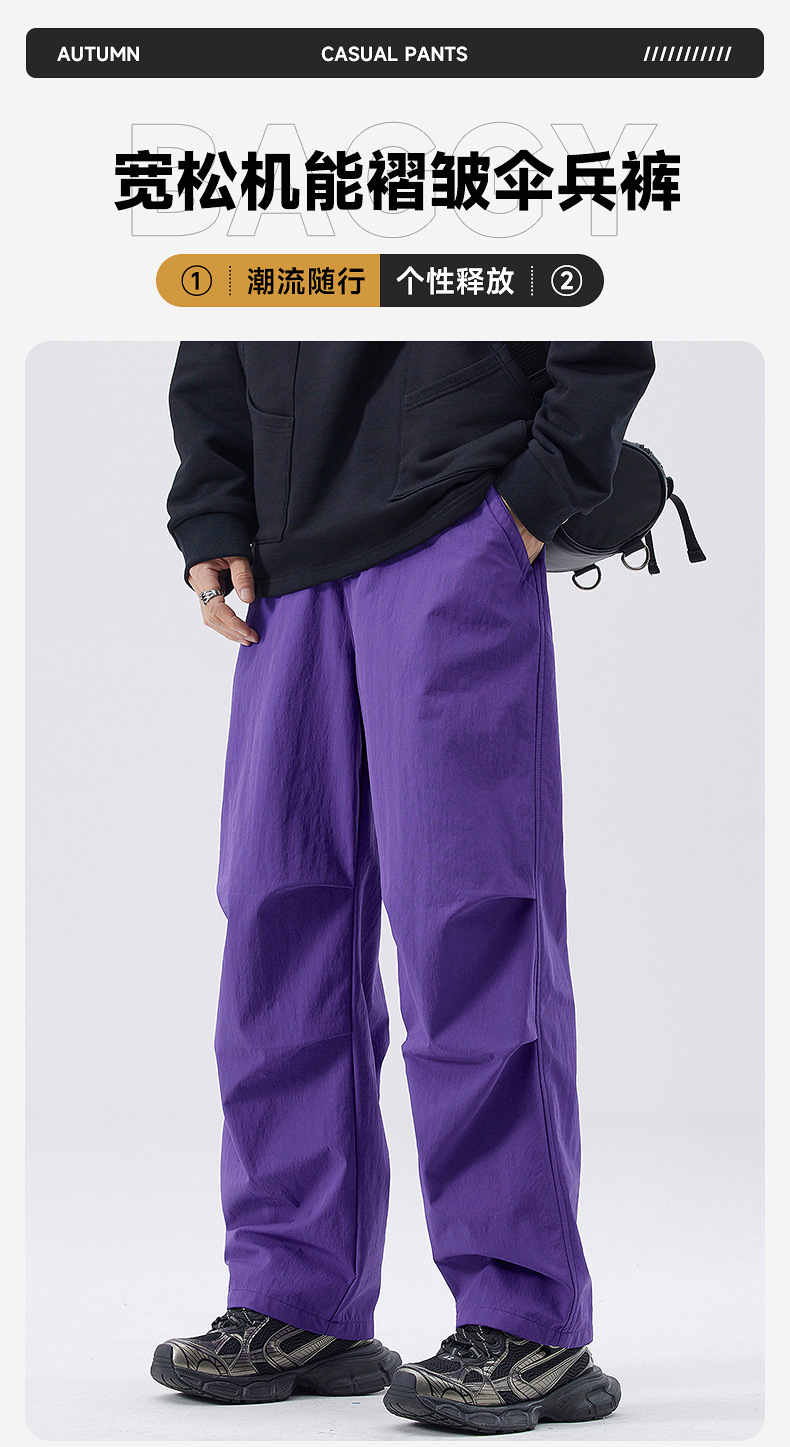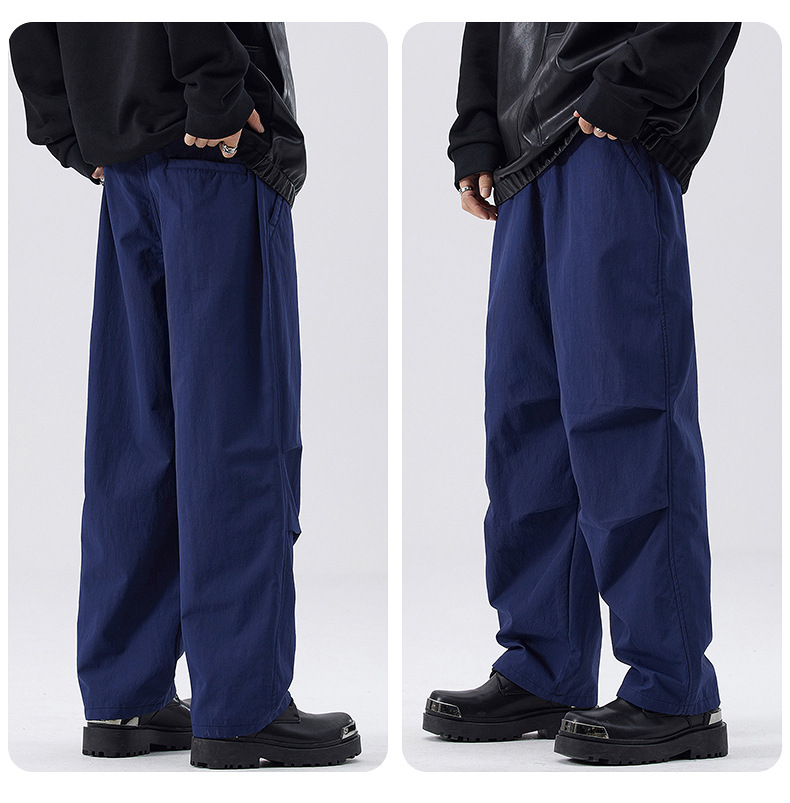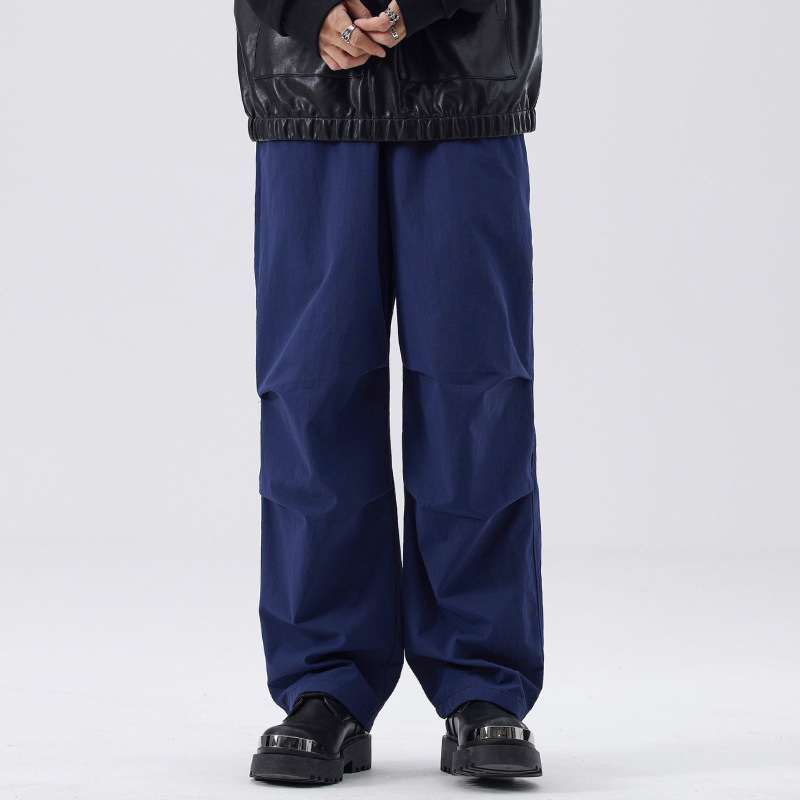 Muqiu 남성복 가을 및 겨울 새로운 미국 스타일 기능성 작업복 캐주얼 바지 남성 주름 느슨한 직선 낙하산 바지