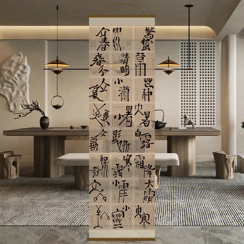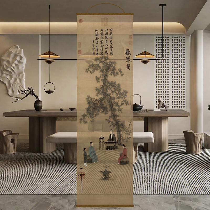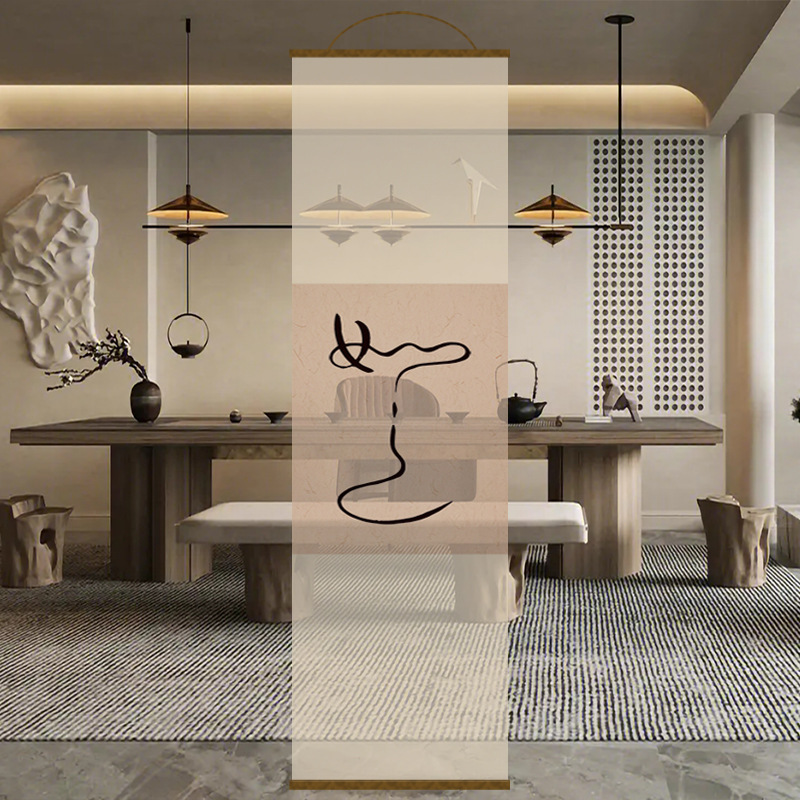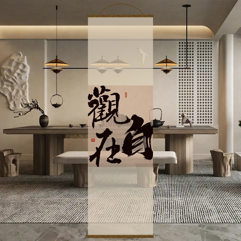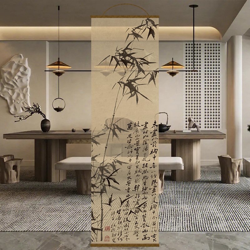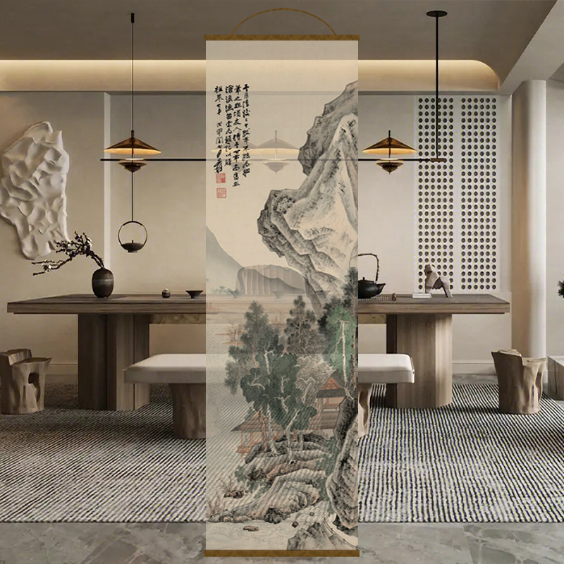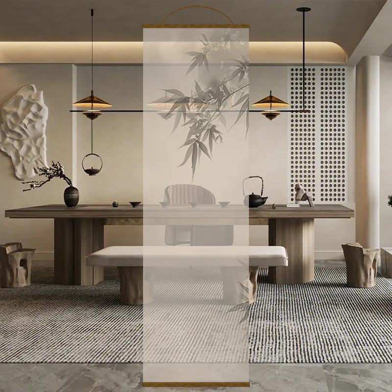 半透纱纱幔装饰画双面挂画半透卷帘纱帘窗帘屏风日式侘寂中国风古风复古隔断挂帘透光禅意透景半透玻璃定制玄关