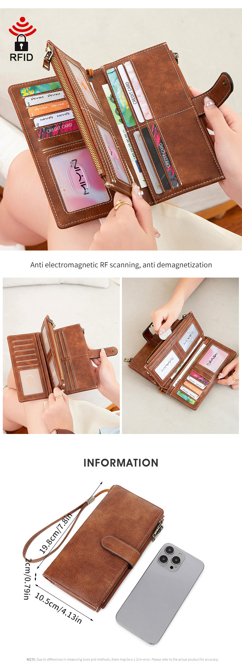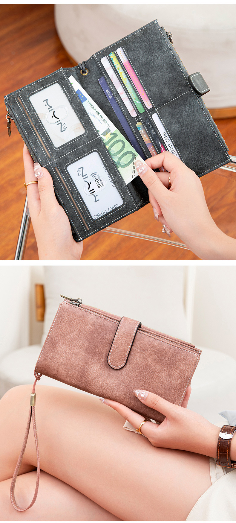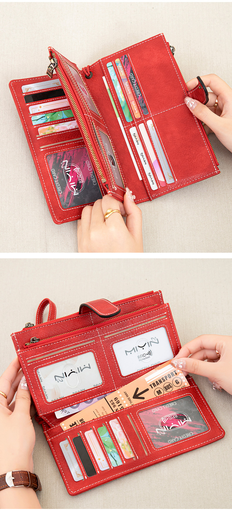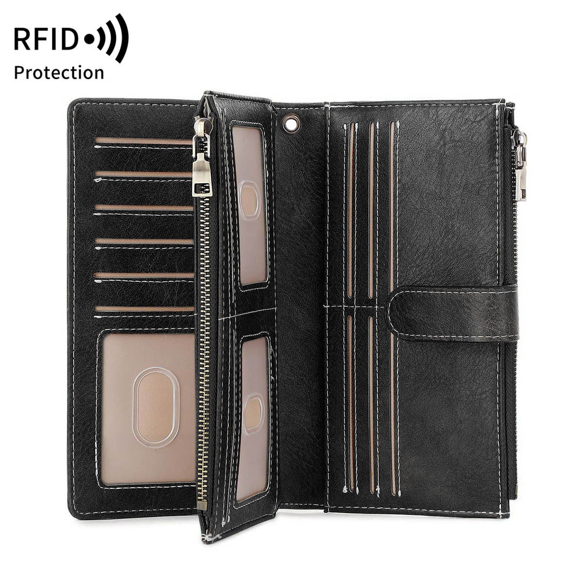 국경 새로운 RFID 3 배 긴 지갑 복고풍 여성 지갑 단색 휴대용 대용량 클러치스토어 가기