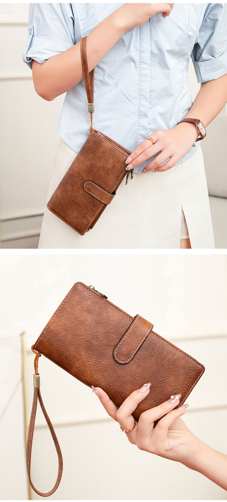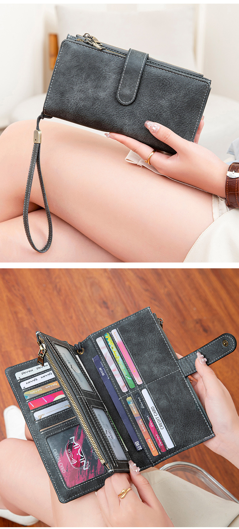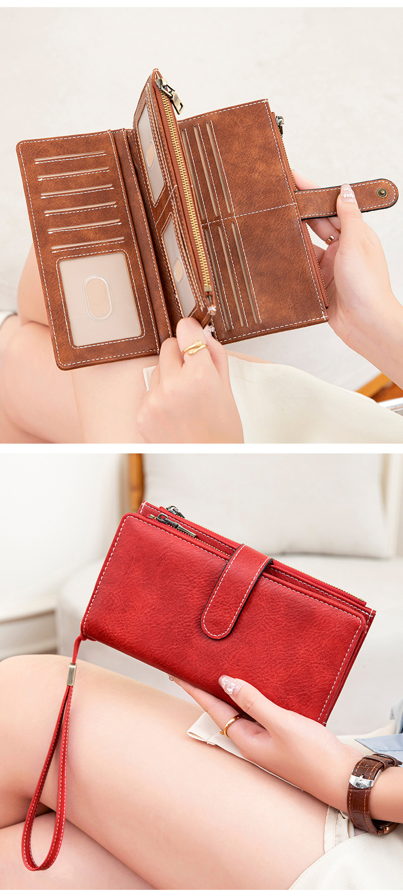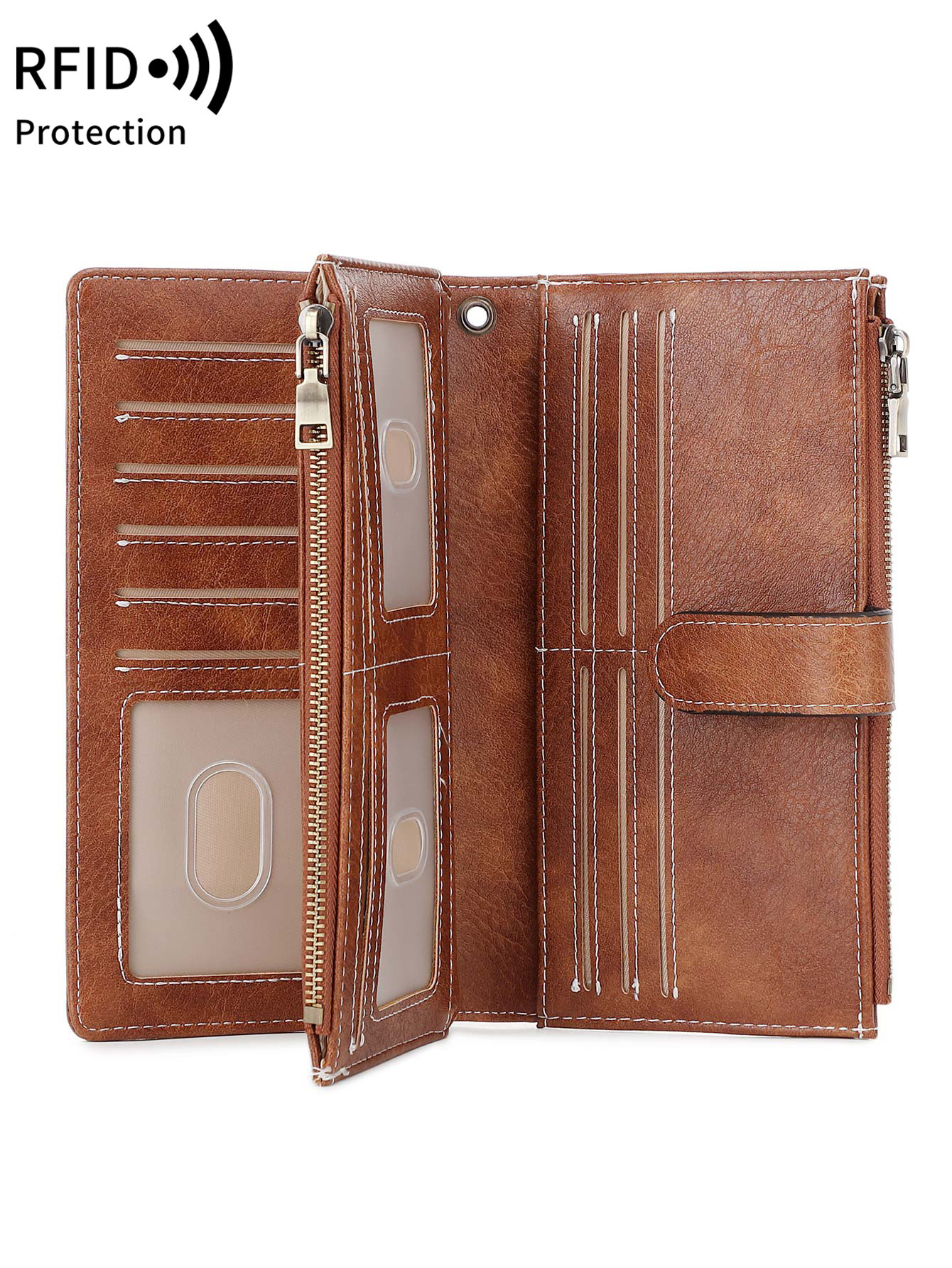 국경 새로운 RFID 3 배 긴 지갑 복고풍 여성 지갑 단색 휴대용 대용량 클러치스토어 가기