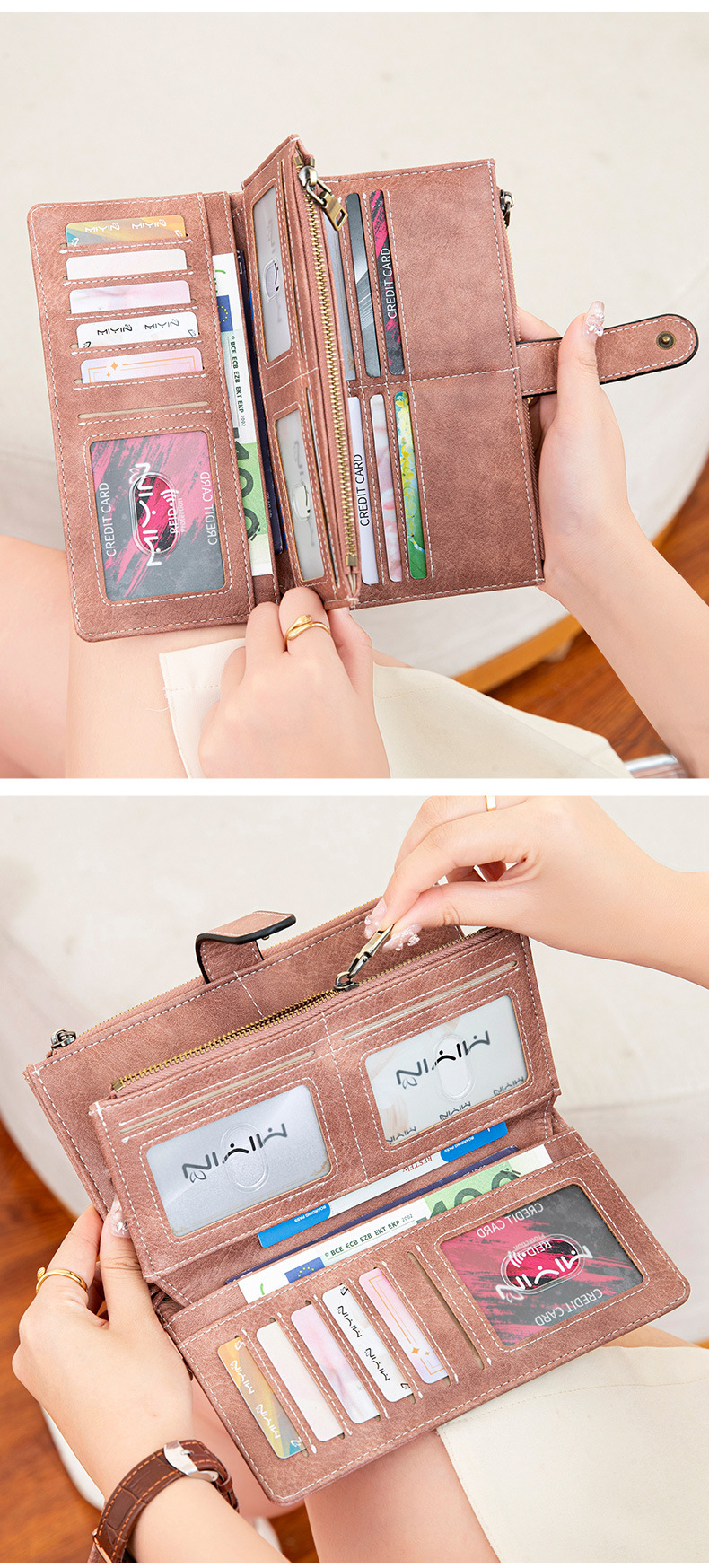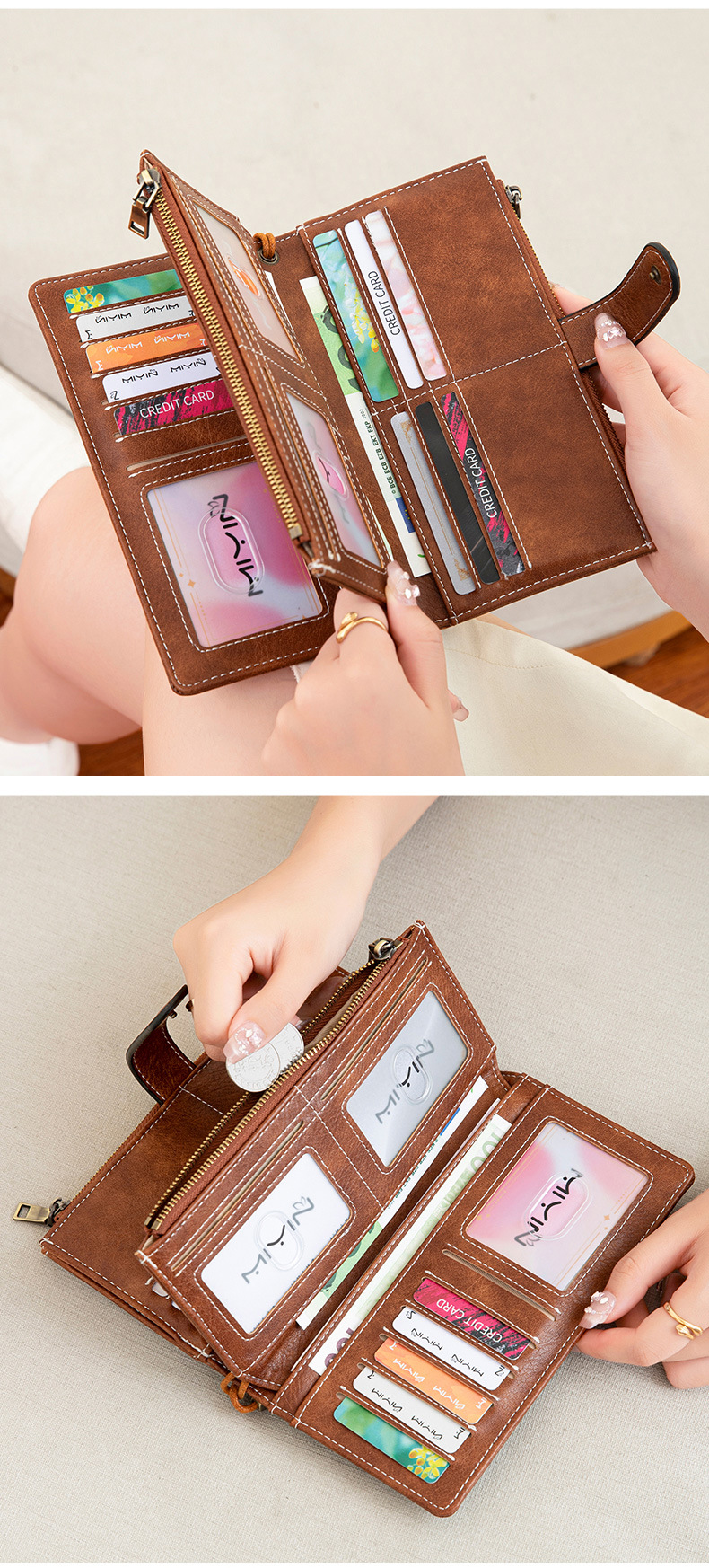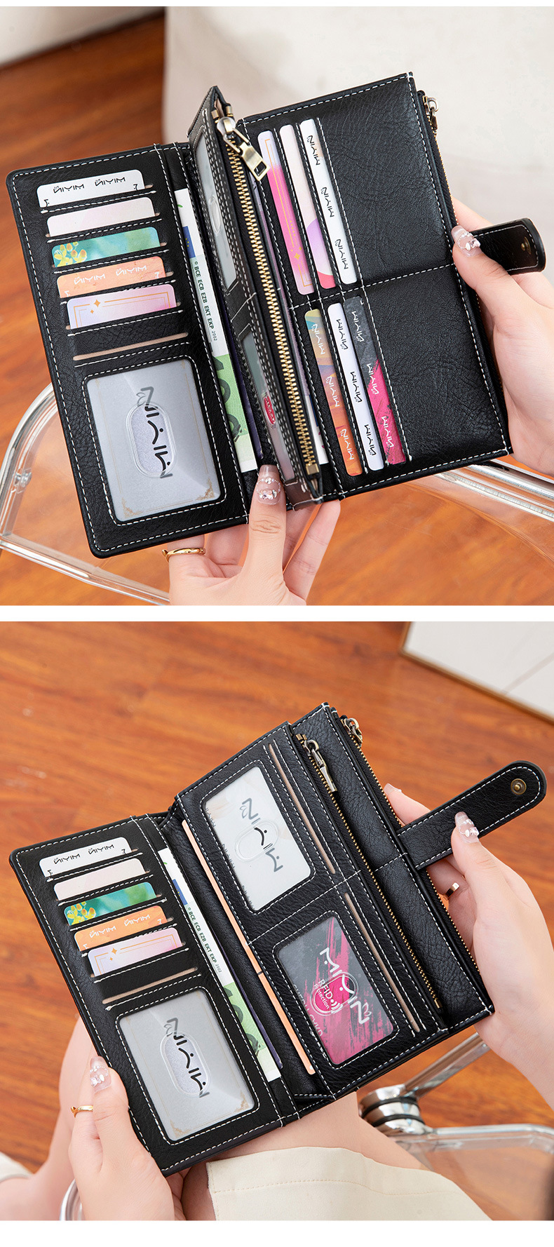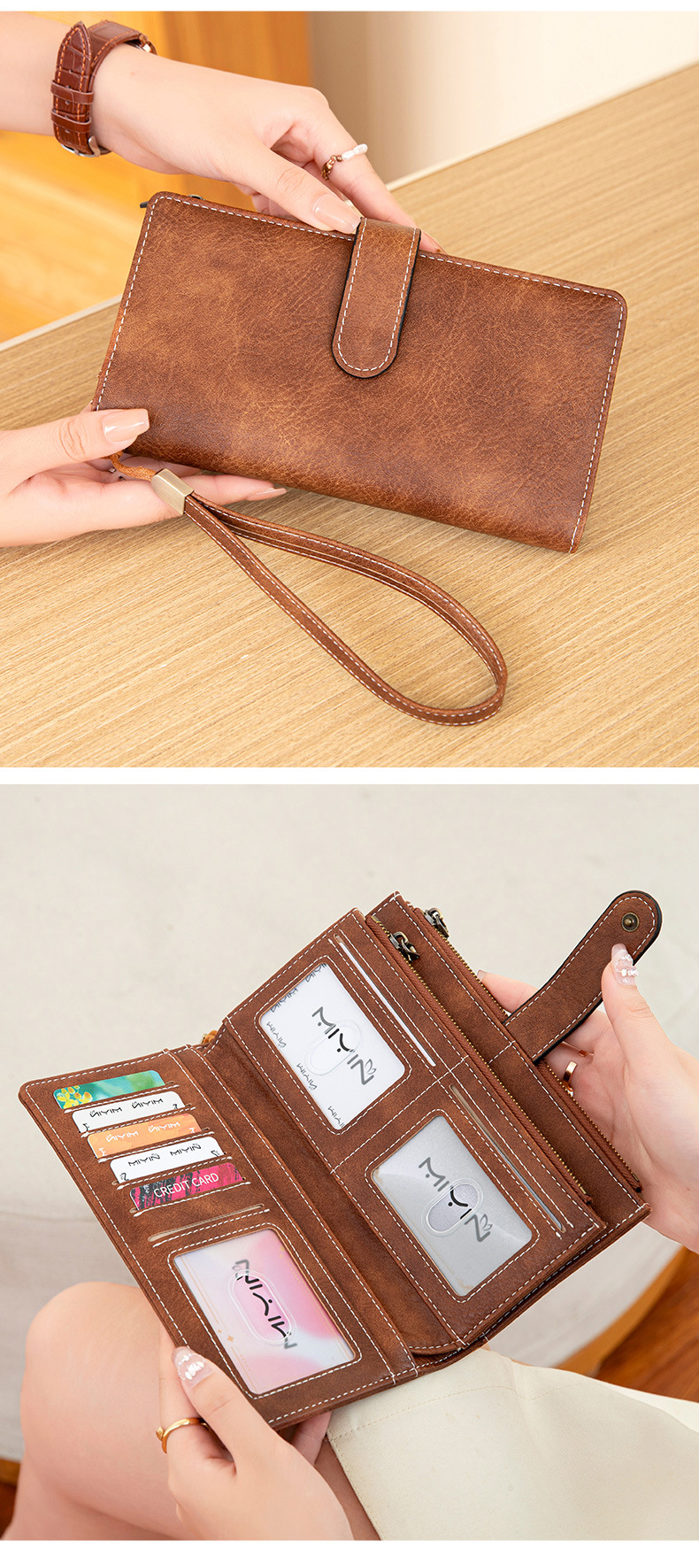 국경 새로운 RFID 3 배 긴 지갑 복고풍 여성 지갑 단색 휴대용 대용량 클러치스토어 가기