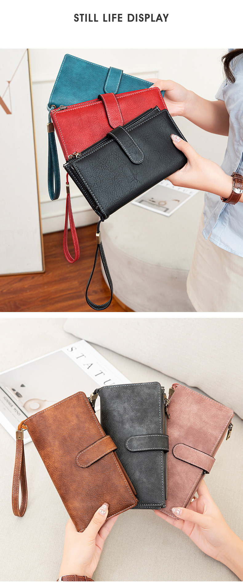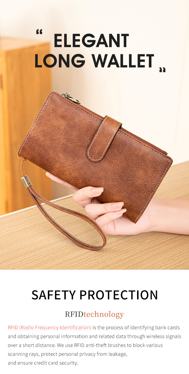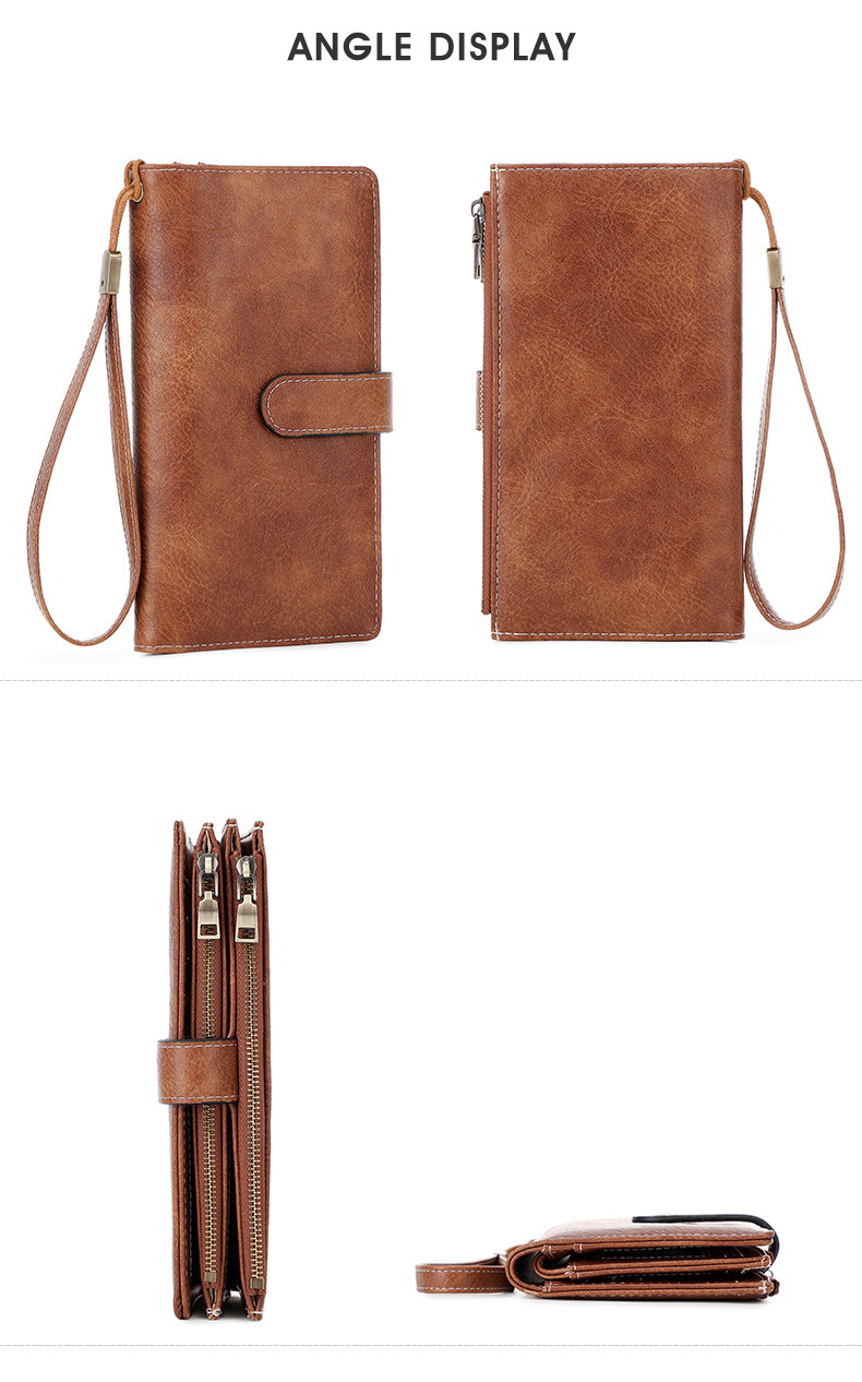 국경 새로운 RFID 3 배 긴 지갑 복고풍 여성 지갑 단색 휴대용 대용량 클러치