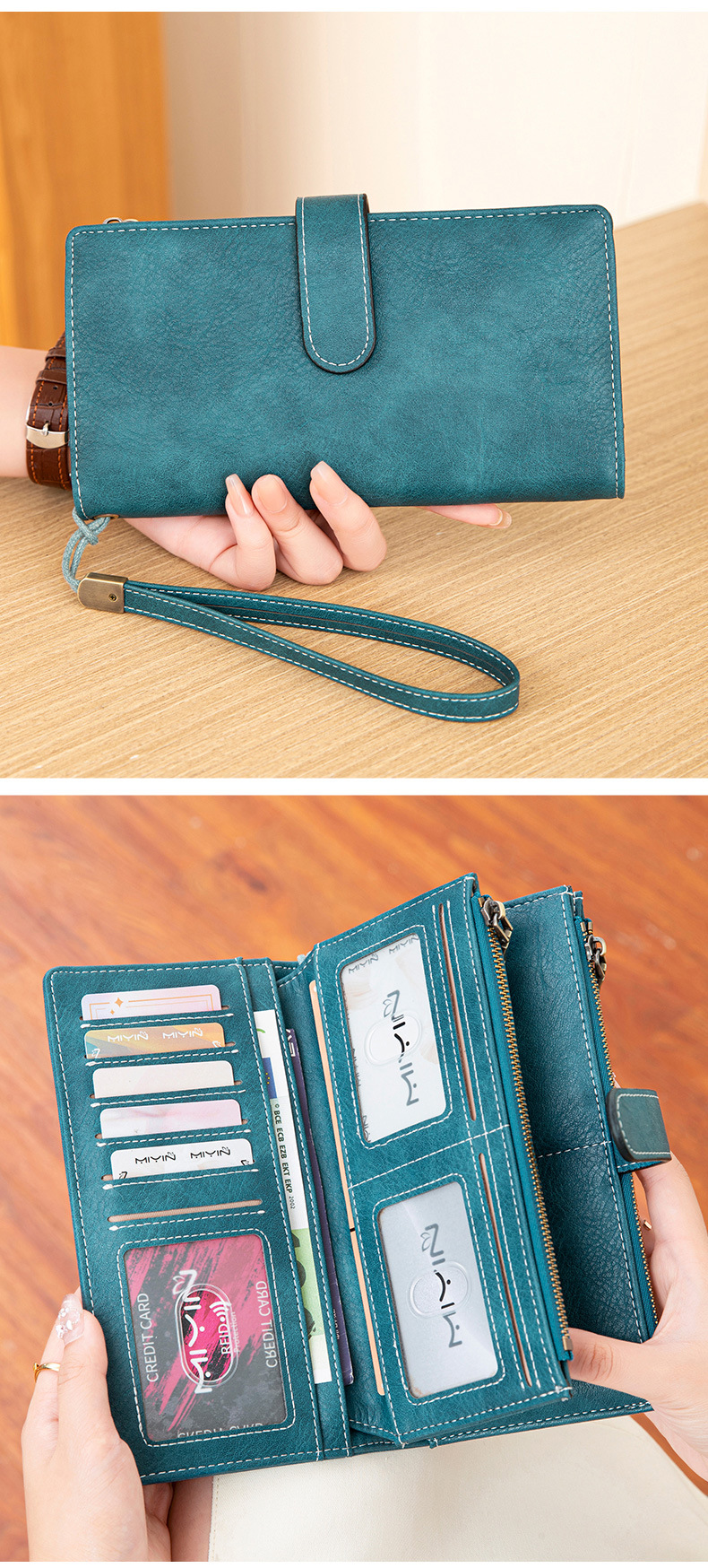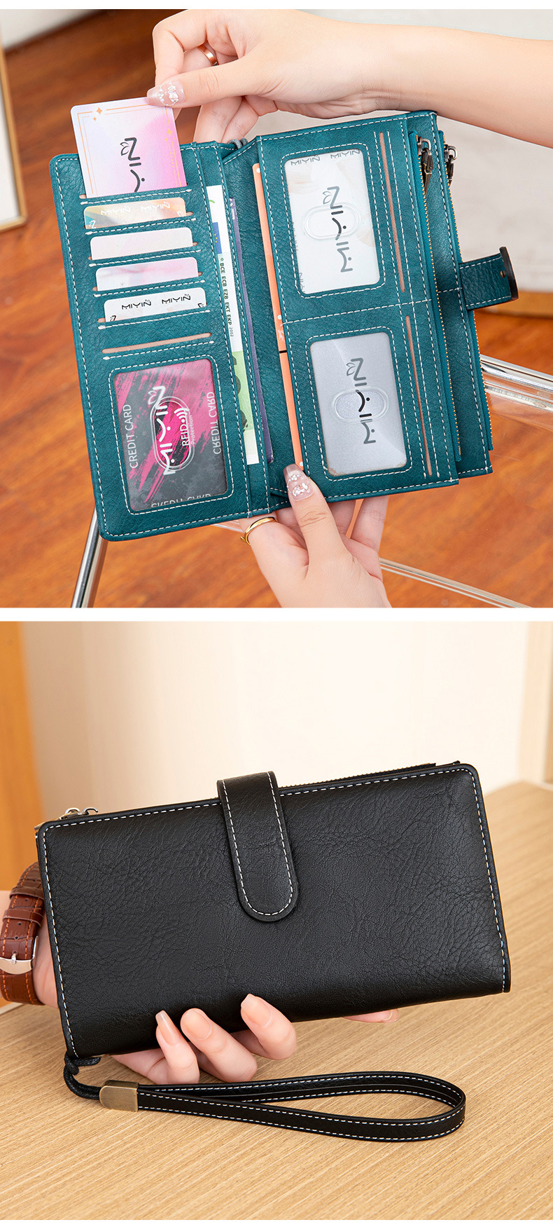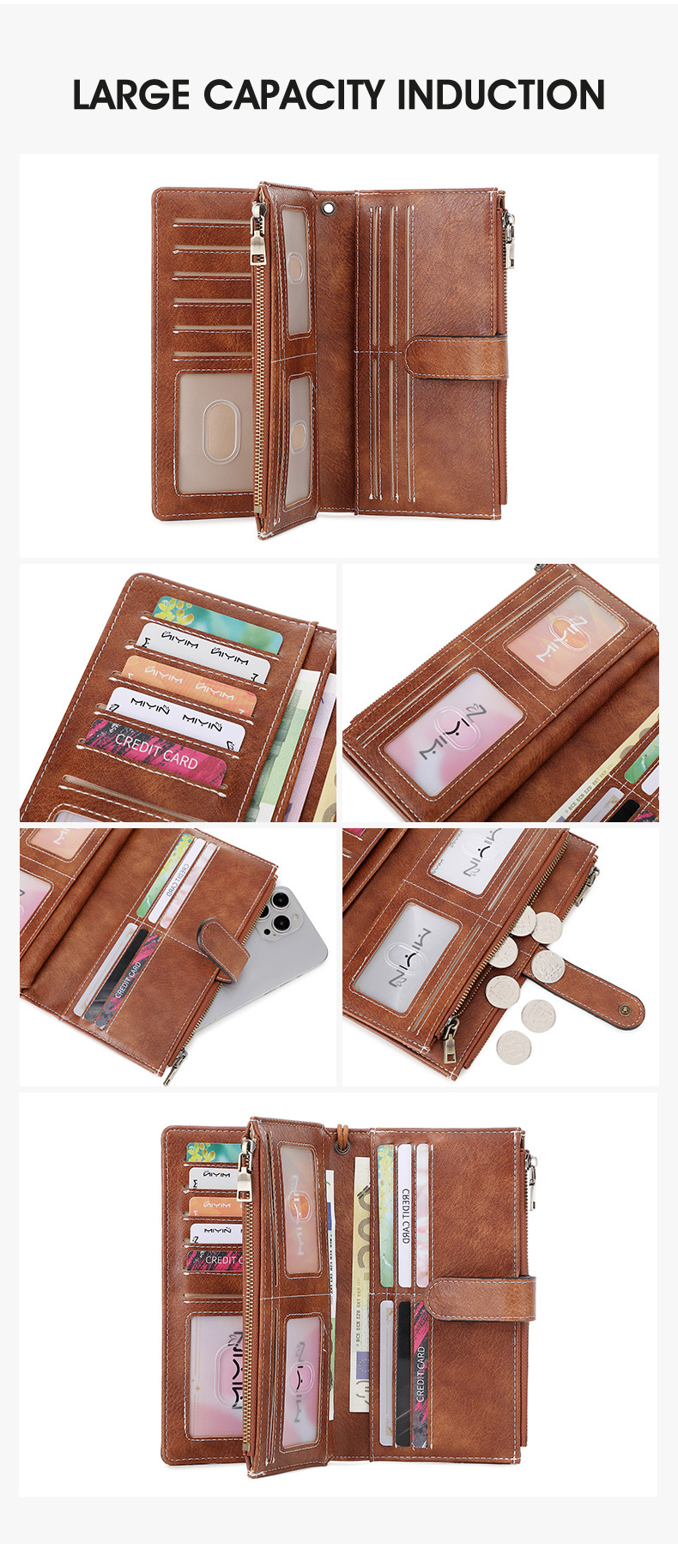 국경 새로운 RFID 3 배 긴 지갑 복고풍 여성 지갑 단색 휴대용 대용량 클러치