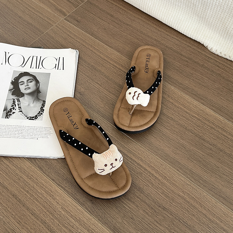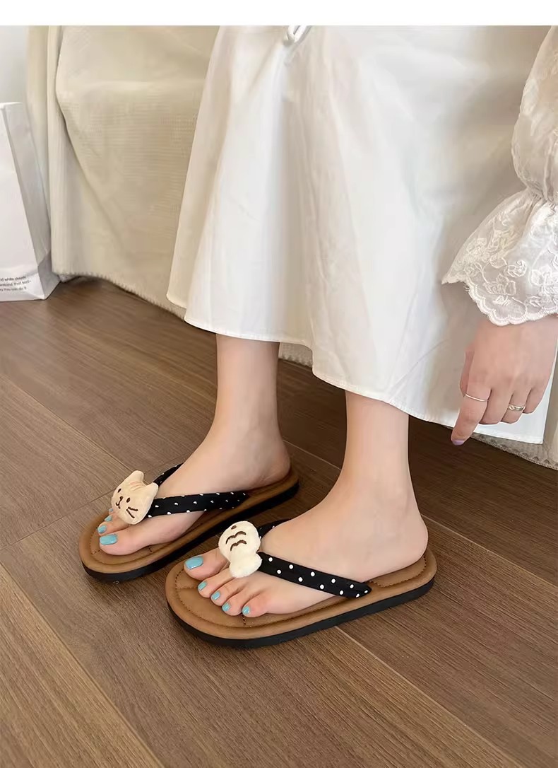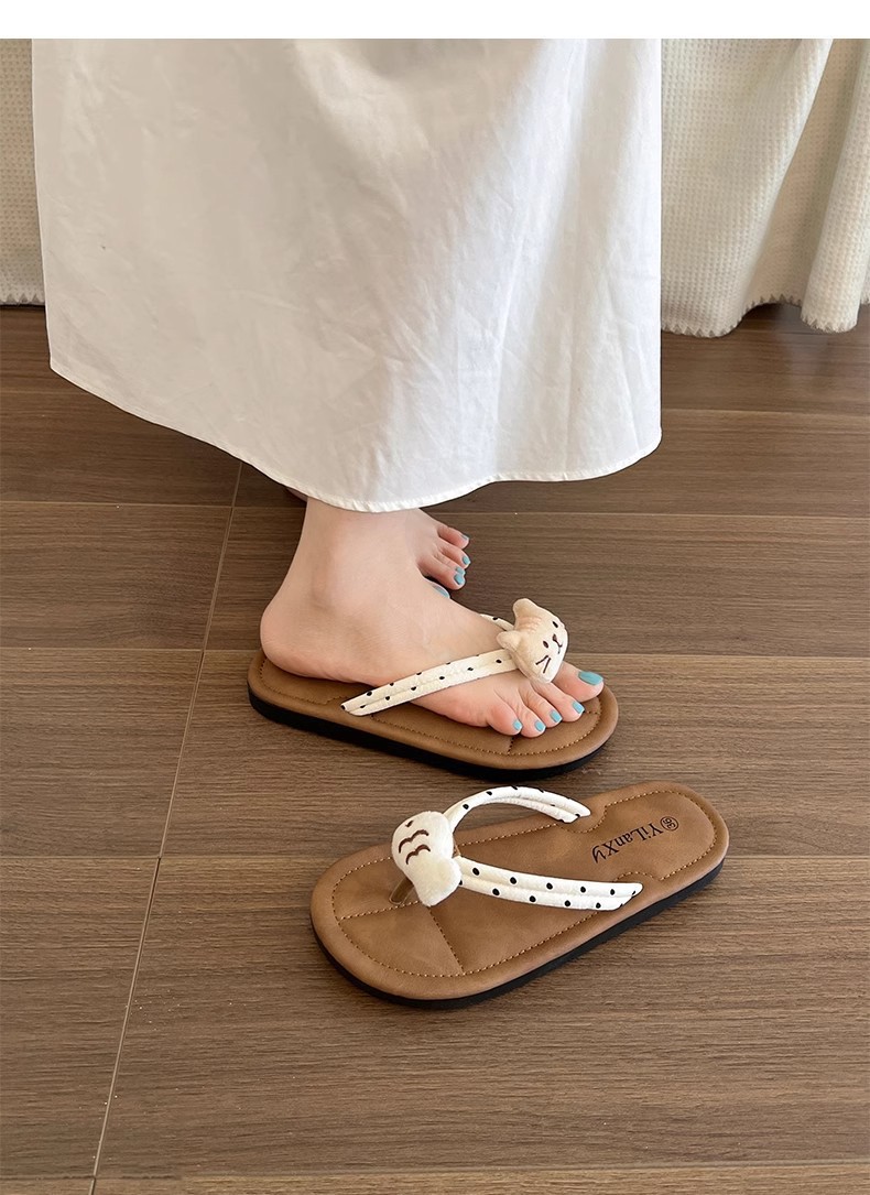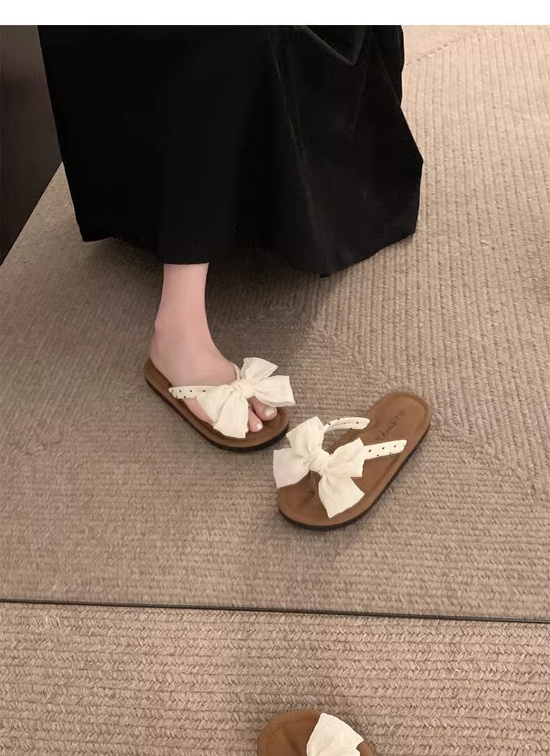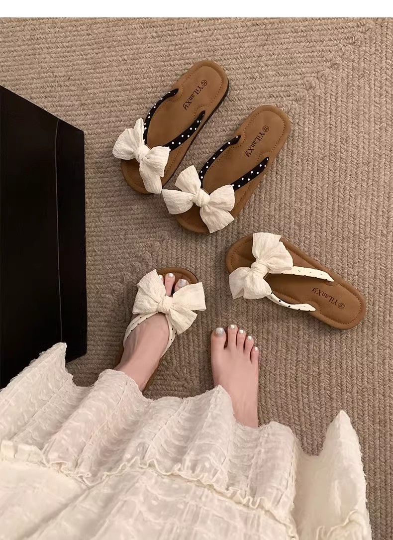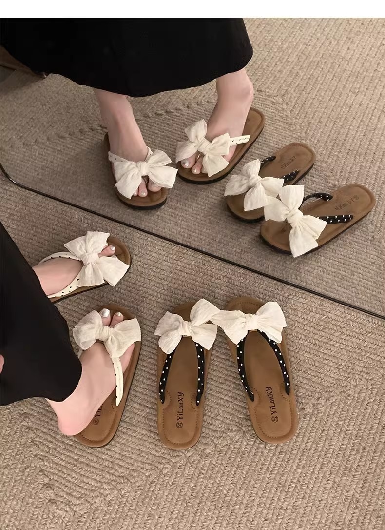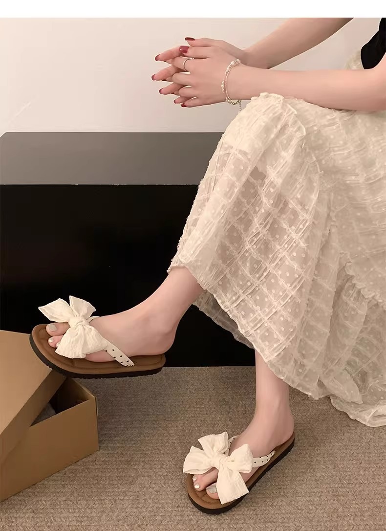 국경 간 귀여운 활 플랫 플립 플롭 여성 여름 아우터웨어 2024 새로운 스타일 스커트 경량 올매치 샌들