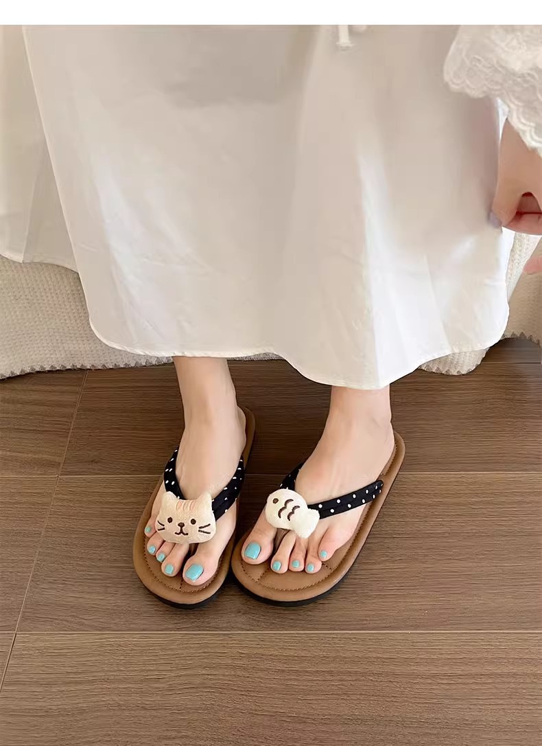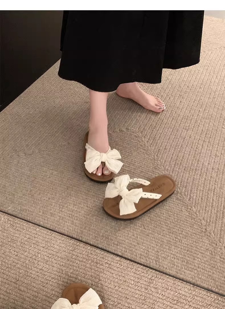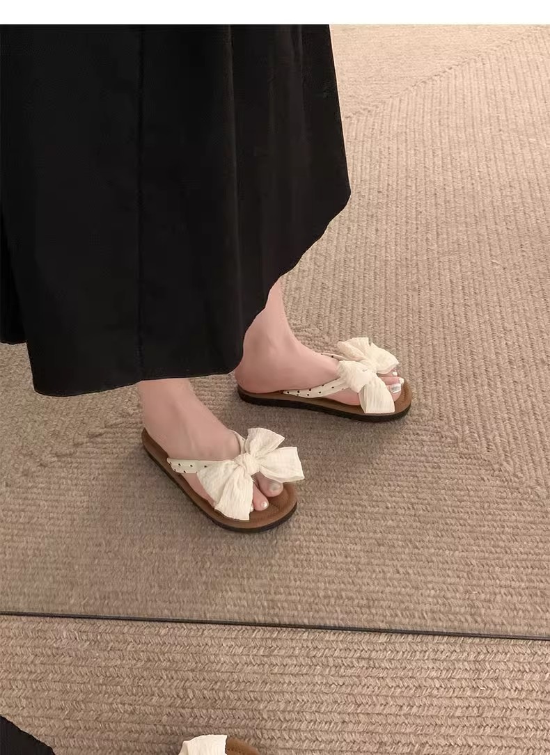 국경 간 귀여운 활 플랫 플립 플롭 여성 여름 아우터웨어 2024 새로운 스타일 스커트 경량 올매치 샌들스토어 가기
