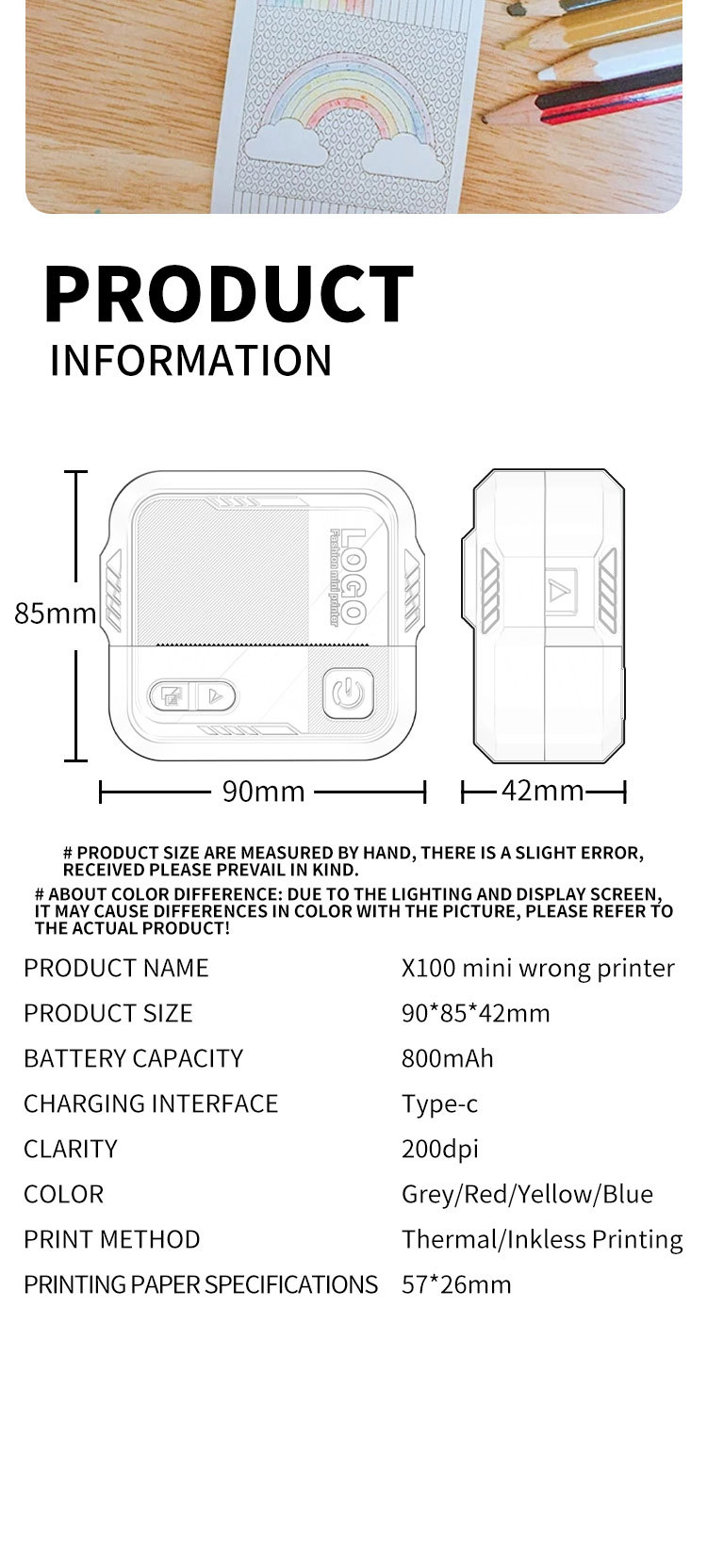 새로운 학생 잘못된 주제 포켓 미니 라벨 편리한 프린터 열 스티커 작은 바코드 프린터