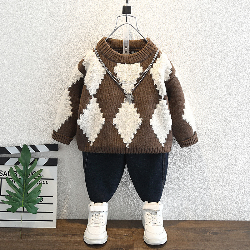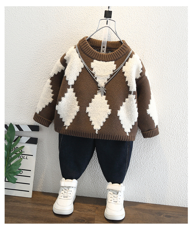 소년 스웨터 가을과 겨울 두꺼운 스웨터 2024 겨울 착용 중소 어린이 따뜻한 니트 스웨터 쿨 트렌디스토어 가기