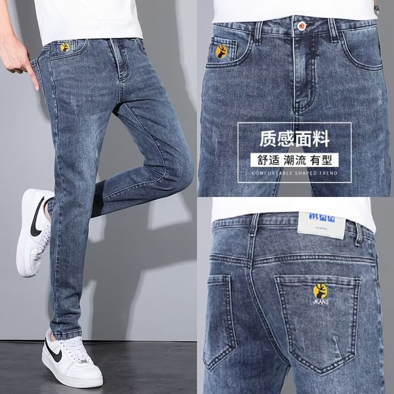 남성용 신축성 데님 팬츠, 한국 스타일 슬림핏 스키니 팬츠, 봄 여름 신상 2025, 스몰 스트레이트 캐주얼 남성용 긴바지스토어 가기