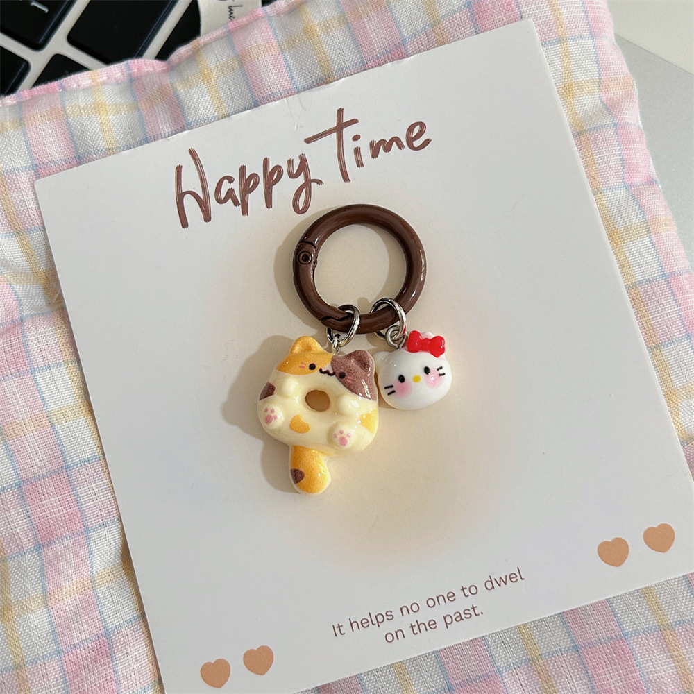 원래 귀여운 만화 도넛 고양이 열쇠 고리 샴 고양이 킨스 바람 키 체인 학교 가방 헤드셋 펜던트