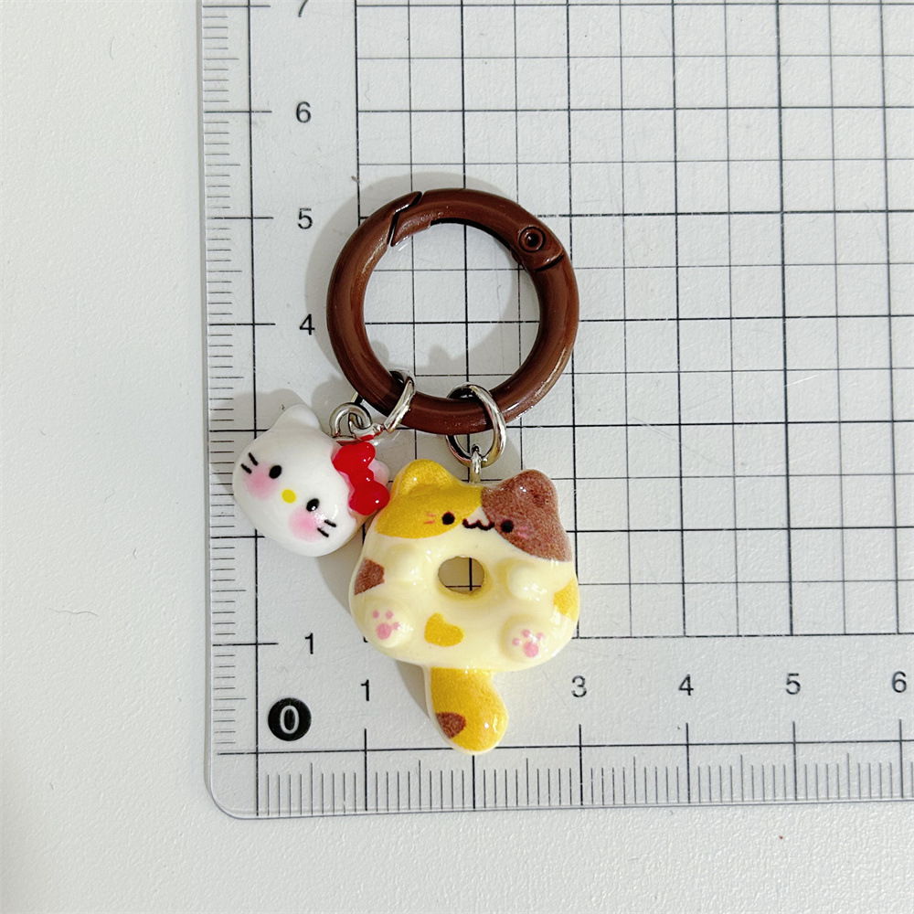 원래 귀여운 만화 도넛 고양이 열쇠 고리 샴 고양이 킨스 바람 키 체인 학교 가방 헤드셋 펜던트스토어 가기