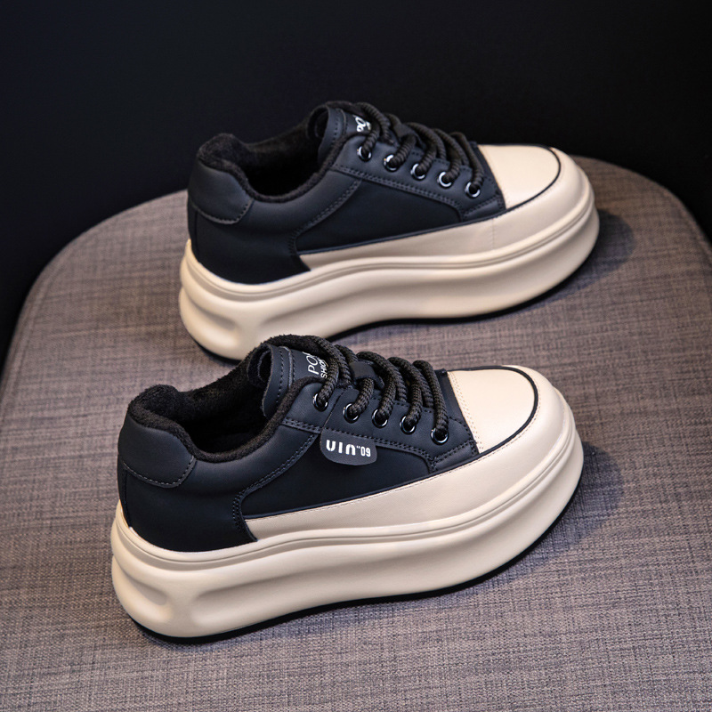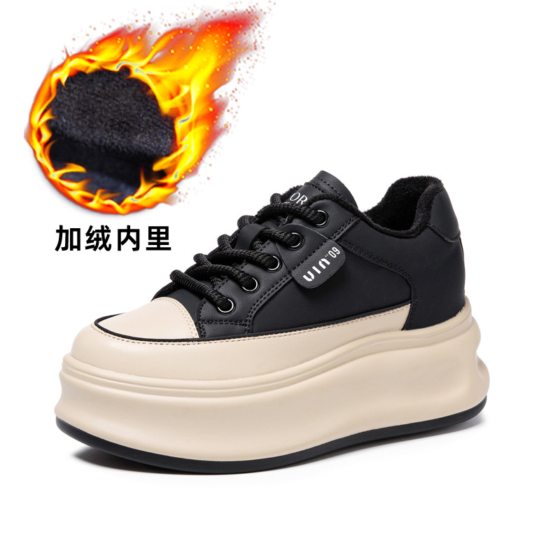 키가 작은 여성을 위한 키높이 신발 2025 가을 겨울 신상 다용도 플랫폼 두꺼운 밑창 8CM 캐주얼 스니커즈 플러스 벨벳 화이트 슈즈스토어 가기