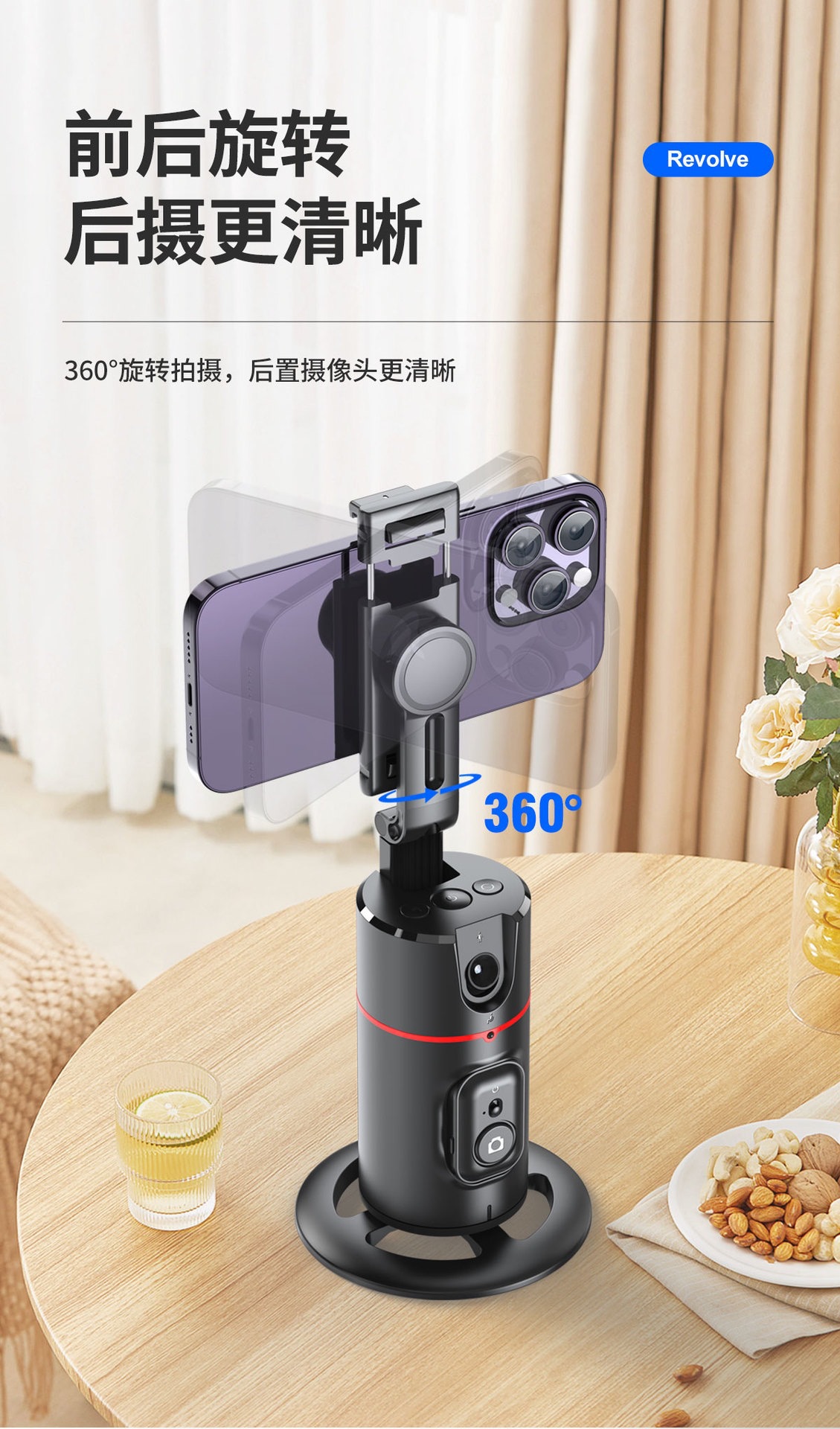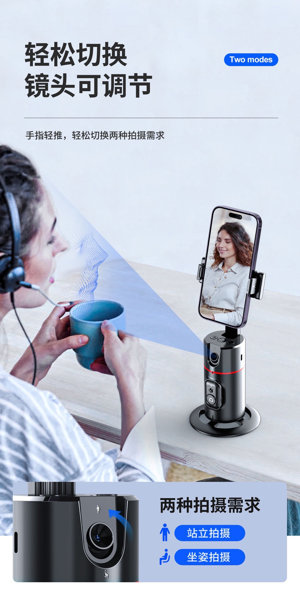 후속 팬 틸트 P02 지능형 AI 얼굴 인식 360 휴대 전화 브래킷 안정기 라이브 사진 자동 추적스토어 가기