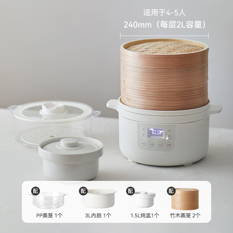 Olayks 대나무 케이지 전기 증기선 가정용 다기능 요리 게 작은 찐빵 찐 빵 아침 식사 기계스토어 가기