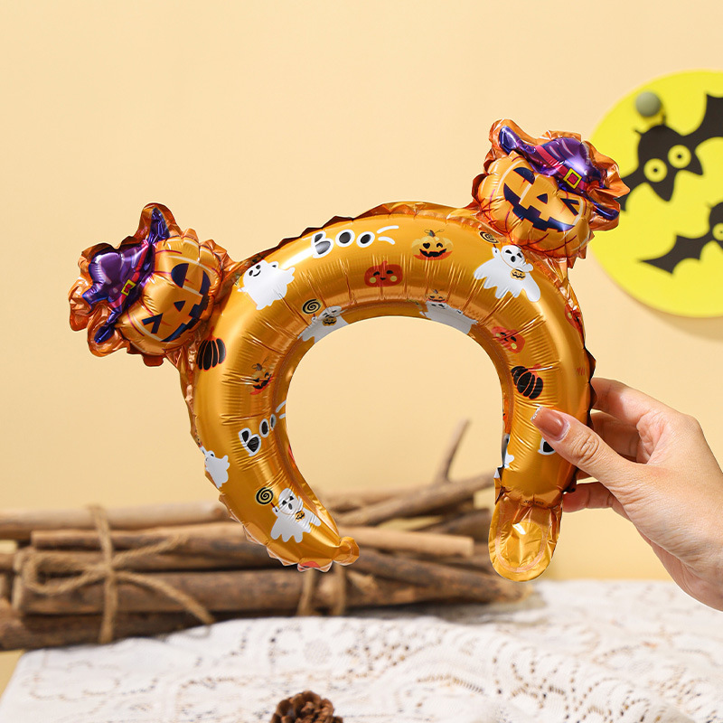 새로운 도매 할로윈 알루미늄 필름 풍선 이벤트 장면 장식 호박 유령 헤어 밴드 손목 할로윈 풍선