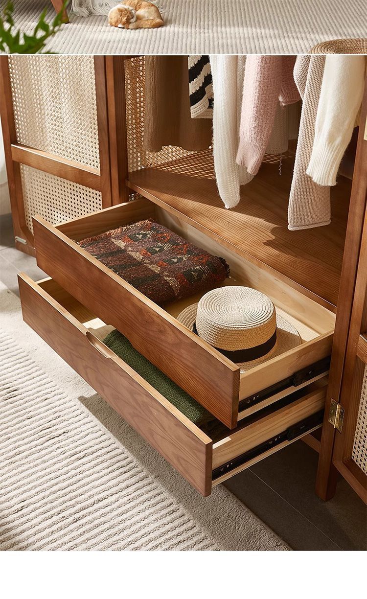 일본식 등나무 옷장 보관 홈스테이 환경 보호-조용한 바람 복고풍 침실 바닥 옷장 설치-무료