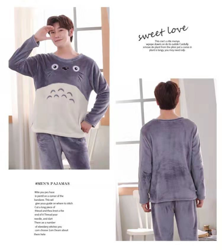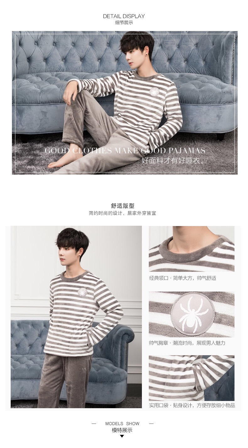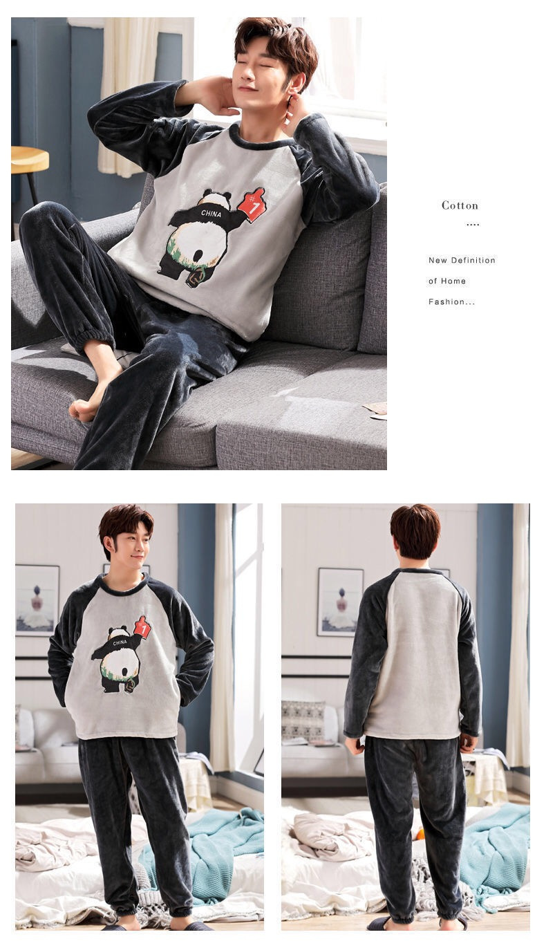 산호 양털 잠옷 남자의 겨울 기모 청소년 가을과 겨울 따뜻한 플란넬 풀오버 홈 의류 세트스토어 가기