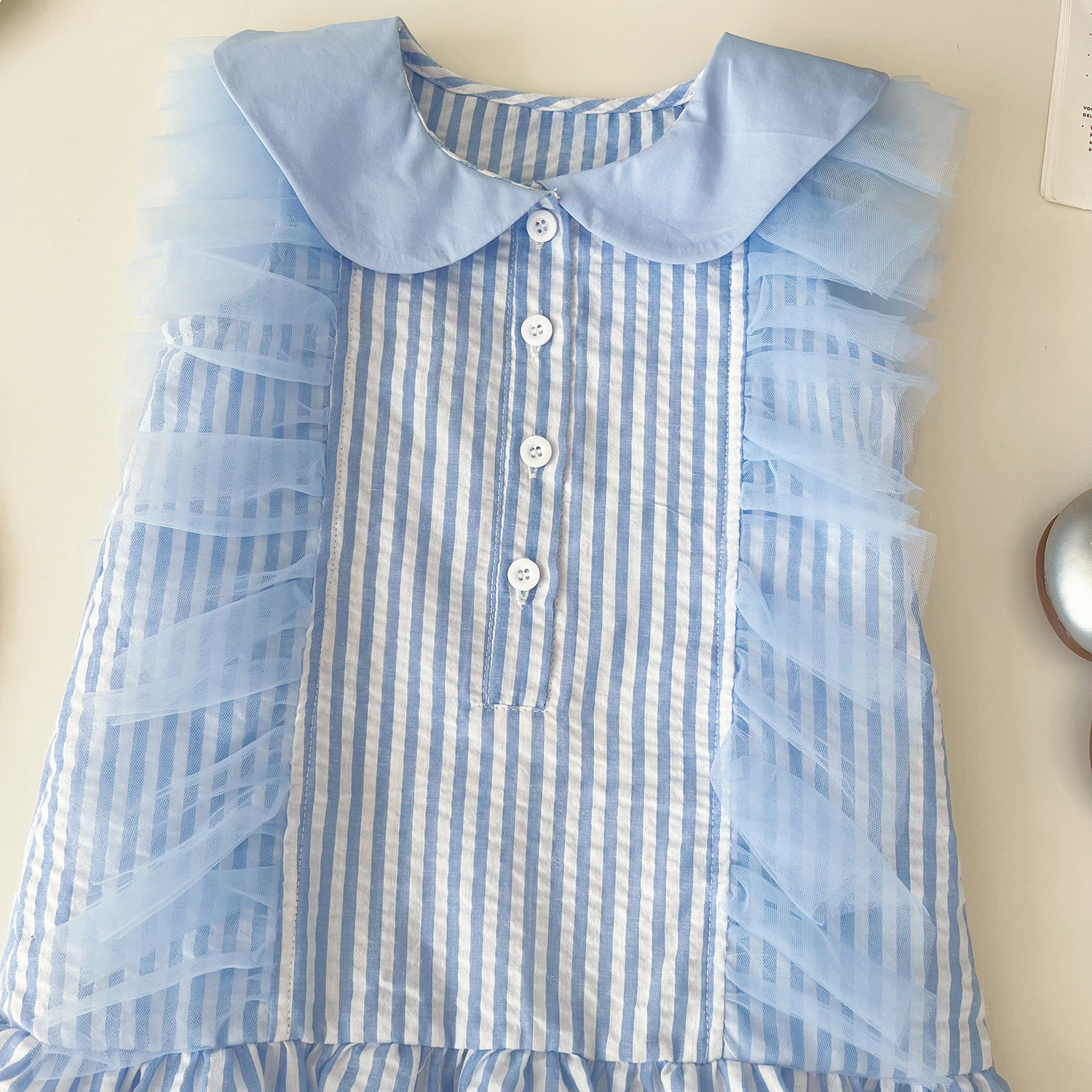 2025 여름 신상 패션 스플라이싱 메쉬 원피스, 샤넬 스타일, 세련된 공주 드레스, 스트라이프 민소매 원피스, 트렌디스토어 가기