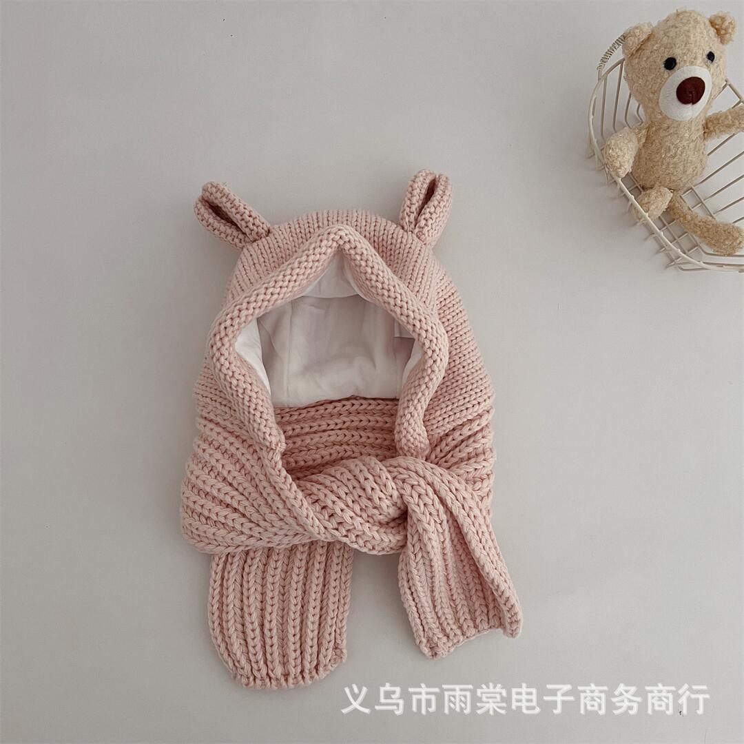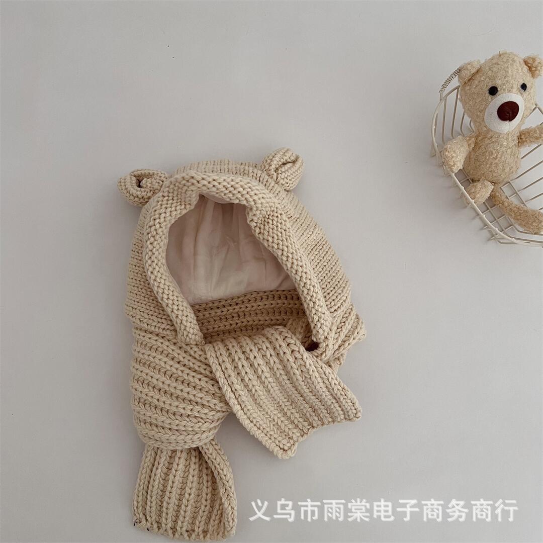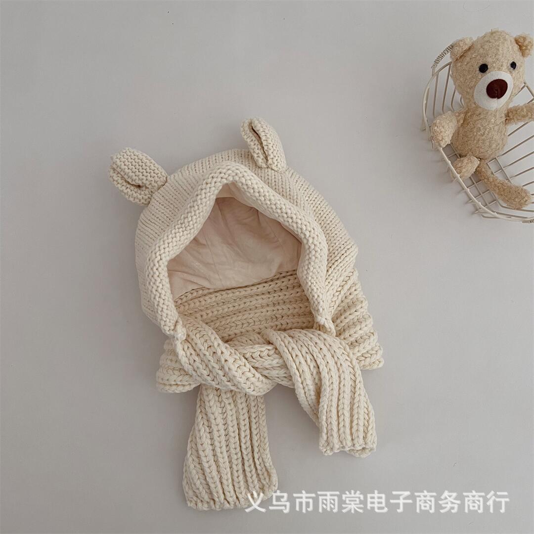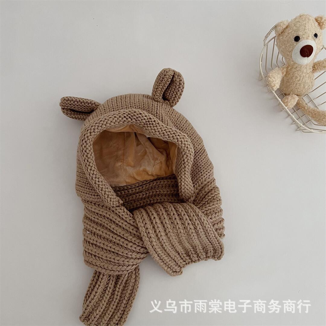 Ins 한국식 어린이 모자와 스카프 통합 겨울 소년과 소녀 아기 귀여운 귀 귀 보호 양모 모자