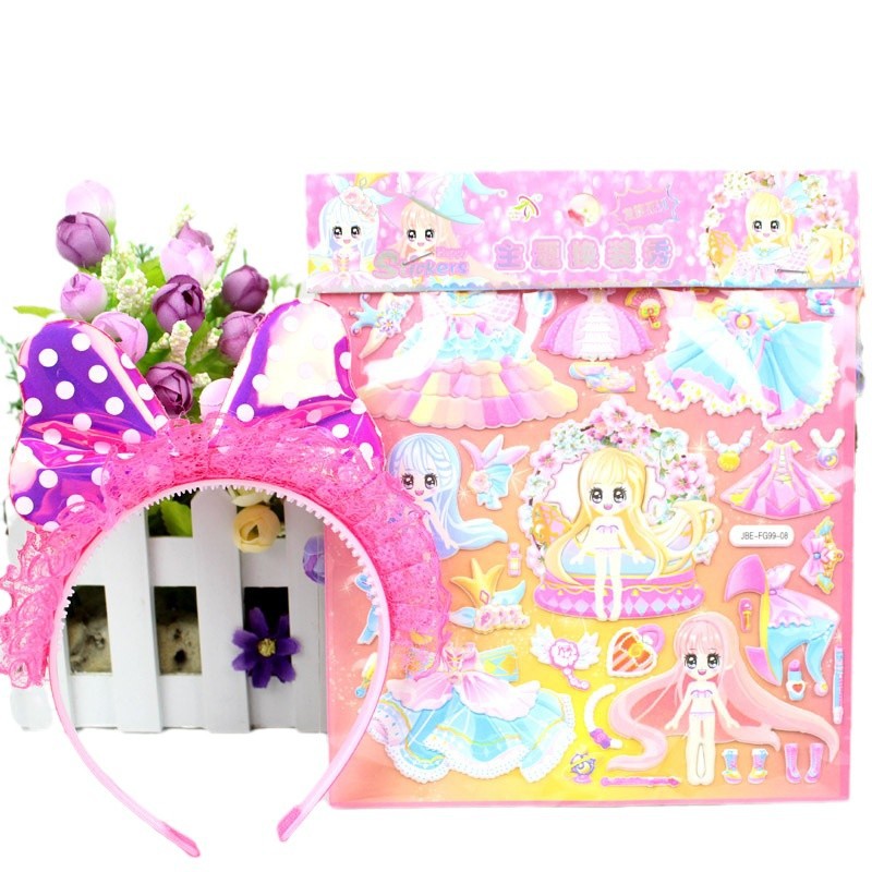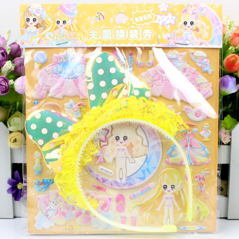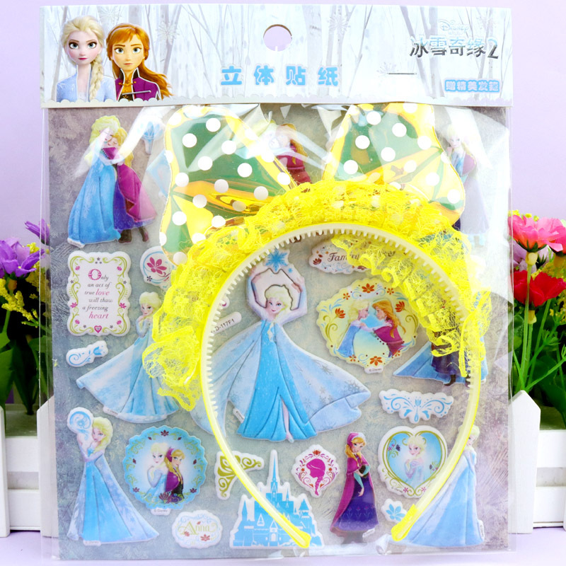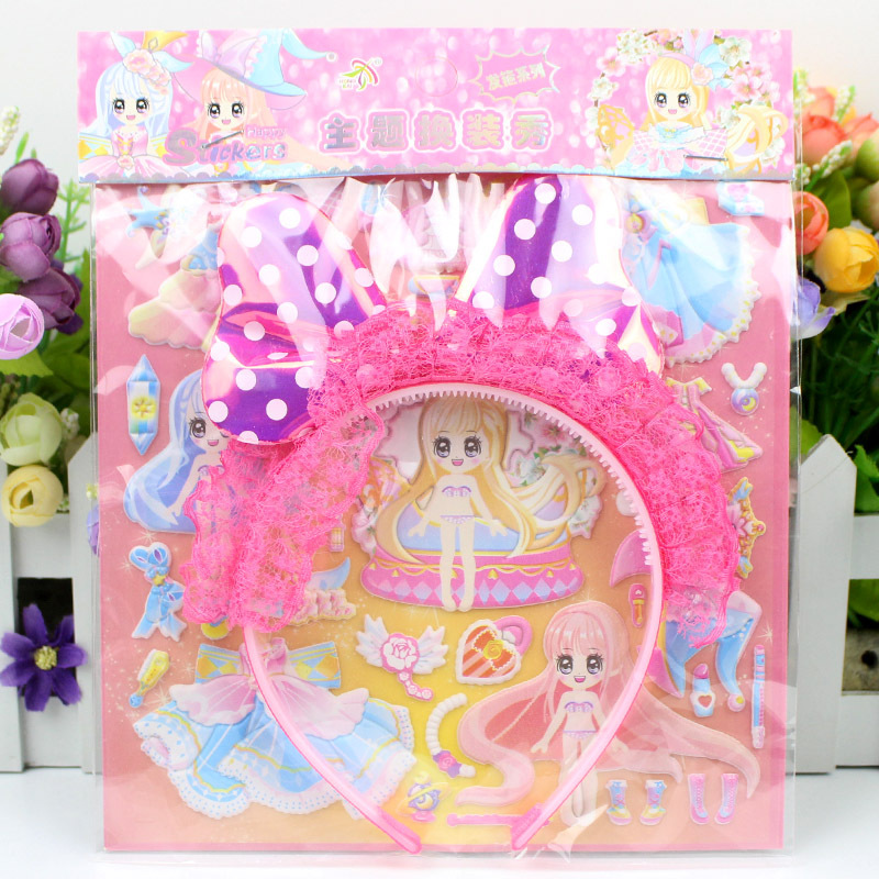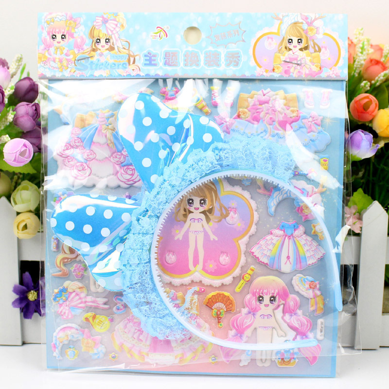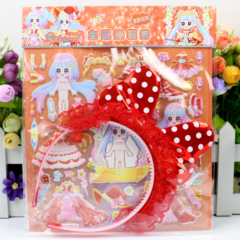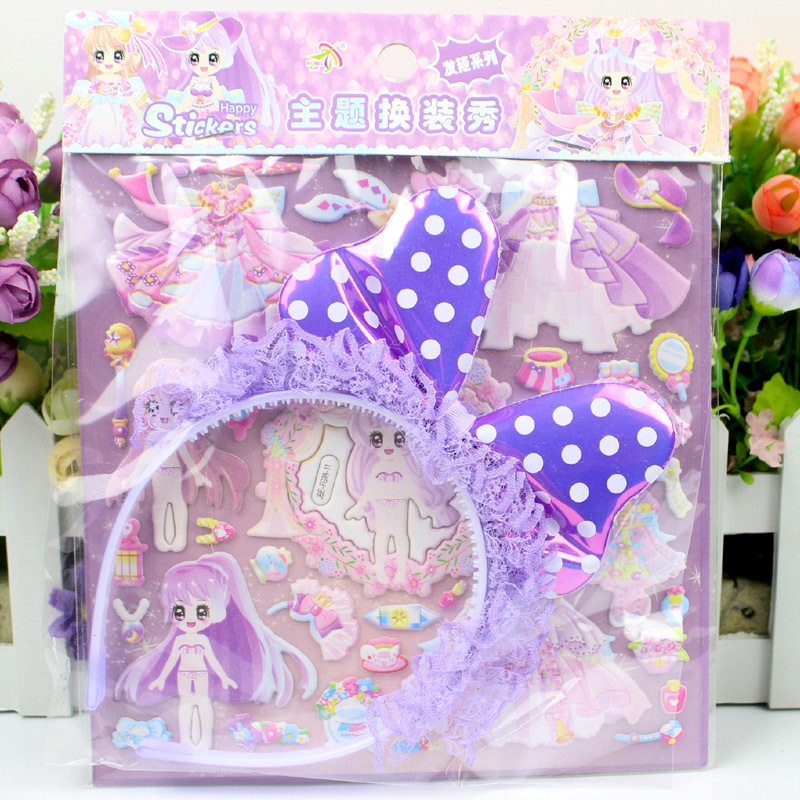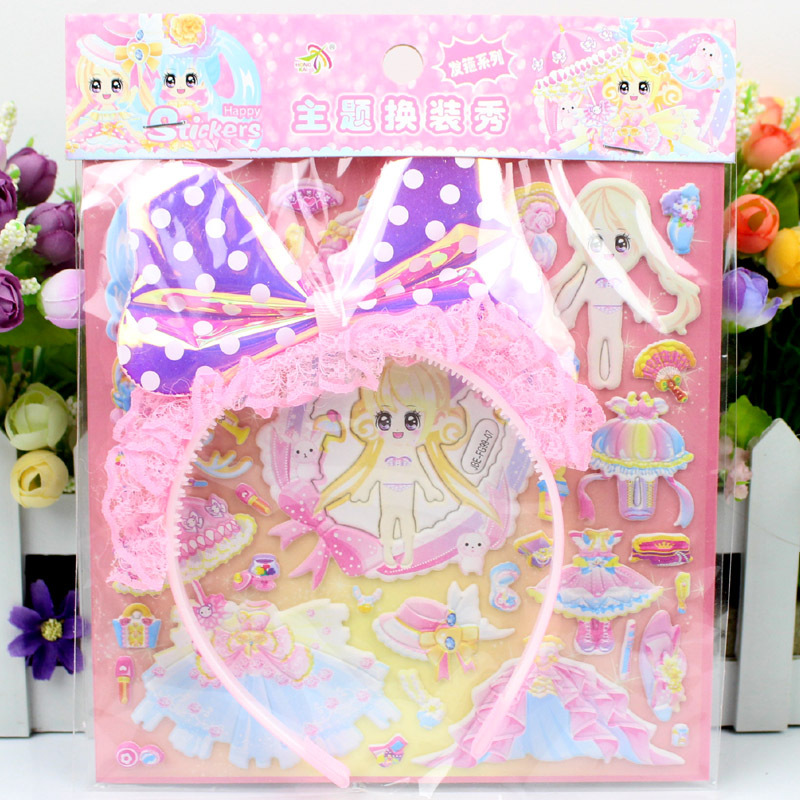 냉동 공주 히비스커스 가죽 버블 3 차원 퍼즐 헤어 카드 변경 원피스 소녀 스티커 어린이 스티커