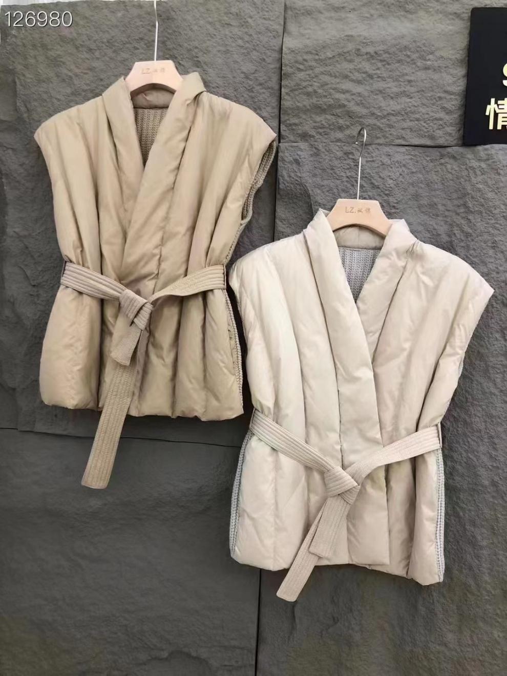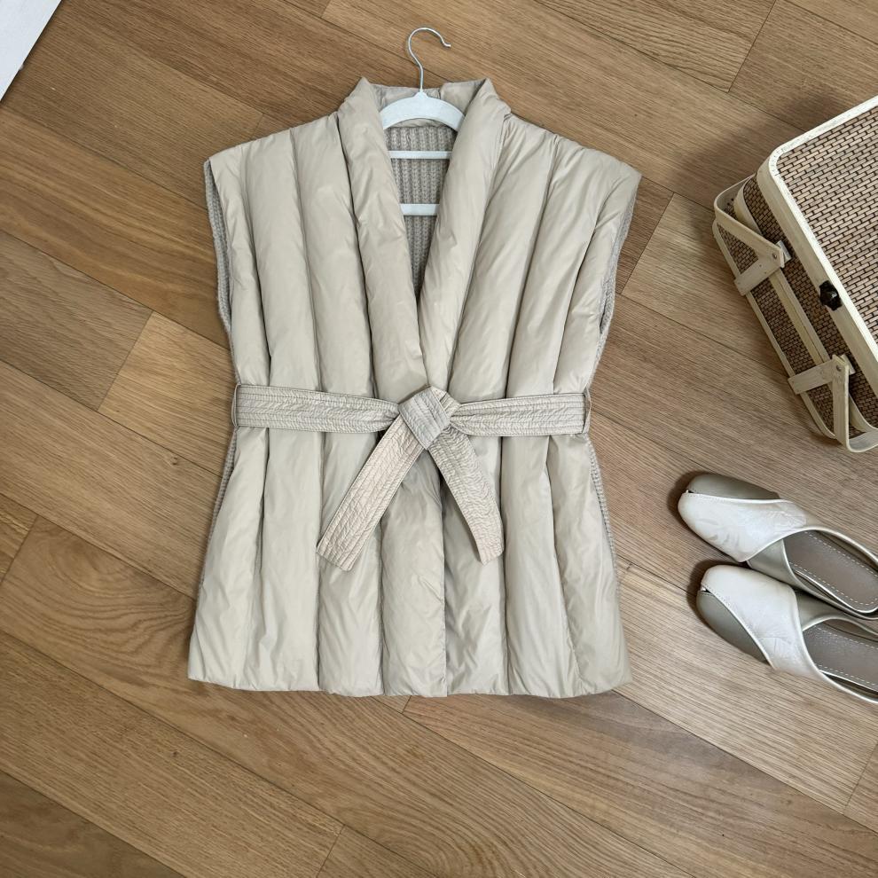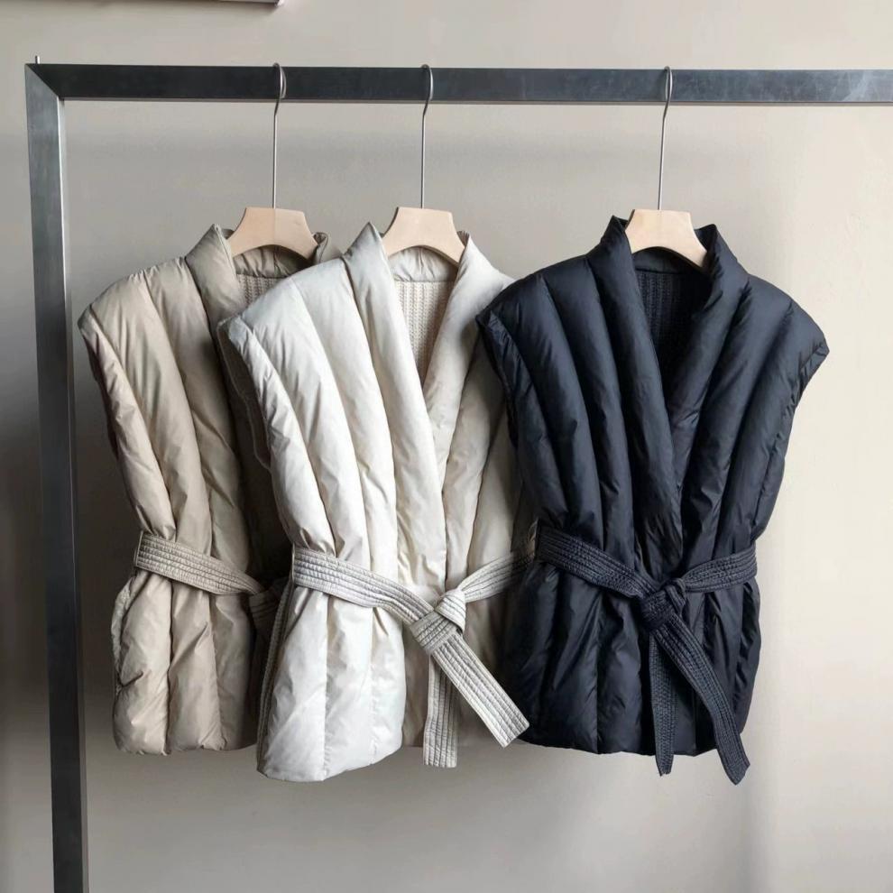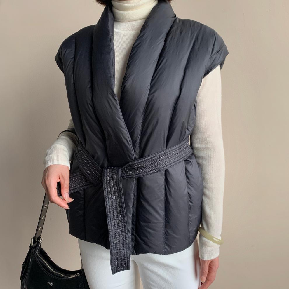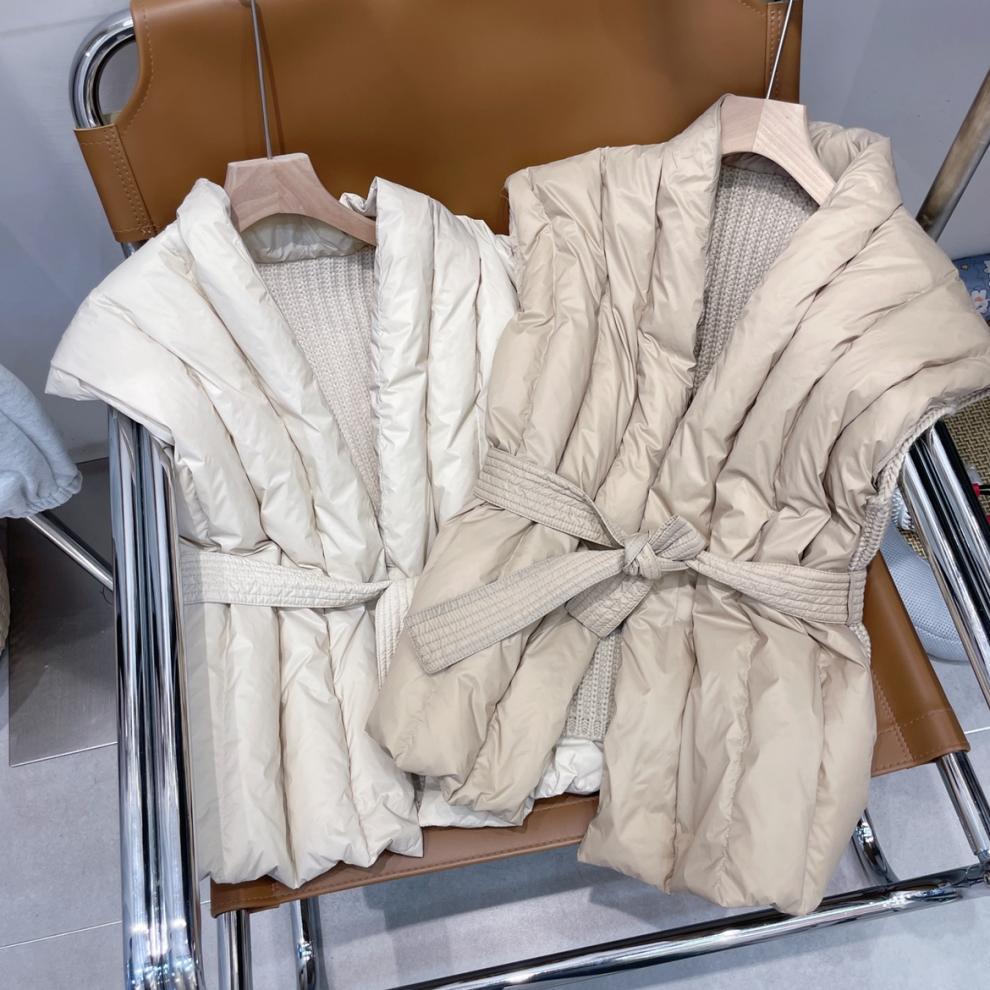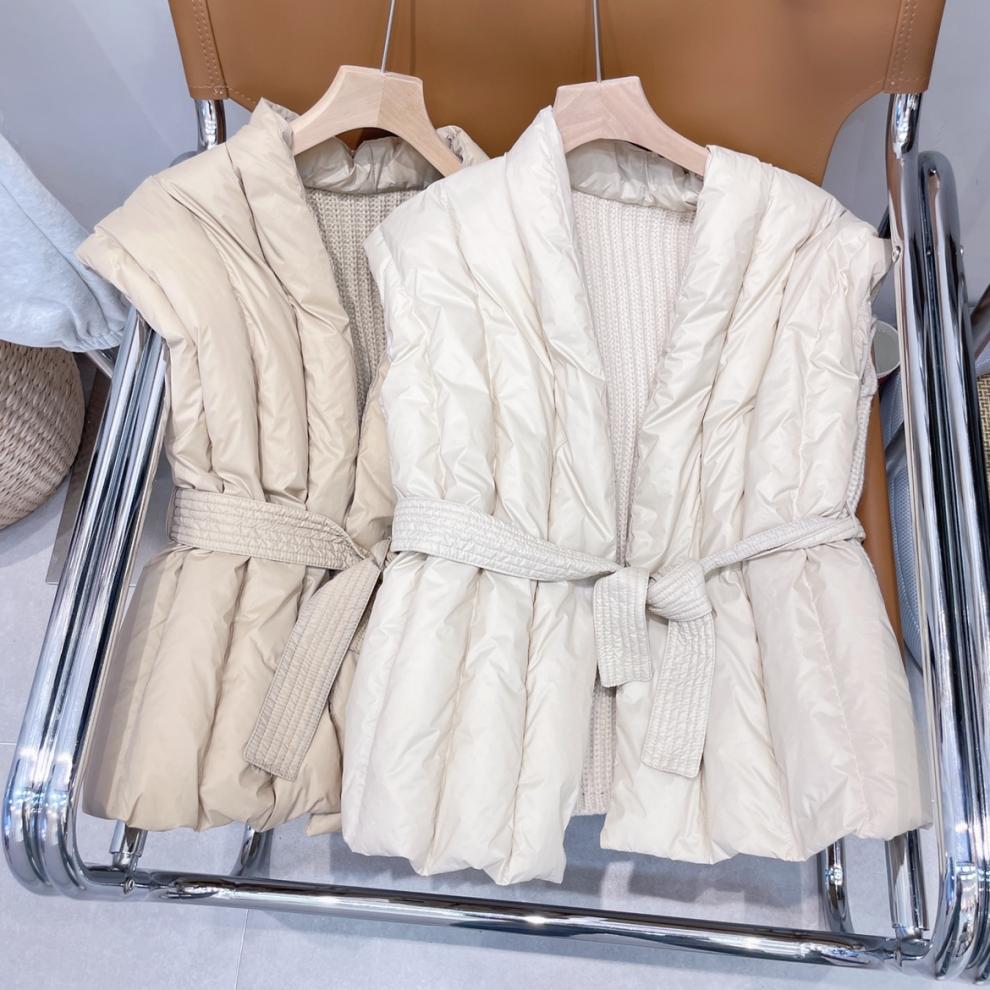 한국 인기 니트 울 혼방 다운 조끼 여성용 가을 겨울 신상품 짧은 스타일 끈 묶는 외투 조끼스토어 가기