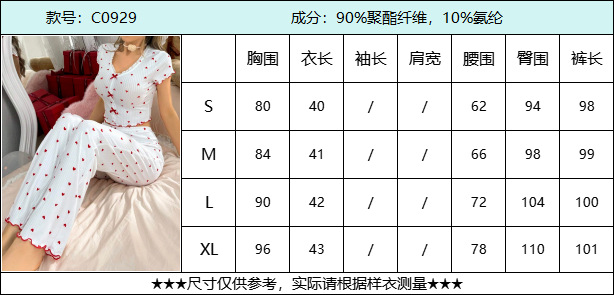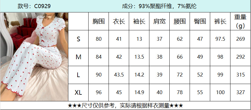 유럽과 미국의 국경 간 인기 홈웨어 프린트 러브 브이넥 반팔 바지 정장은 여성용 투피스 잠옷으로 착용 가능