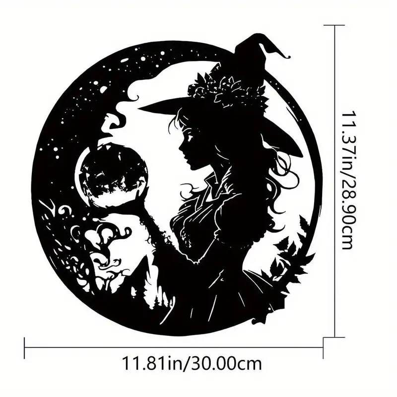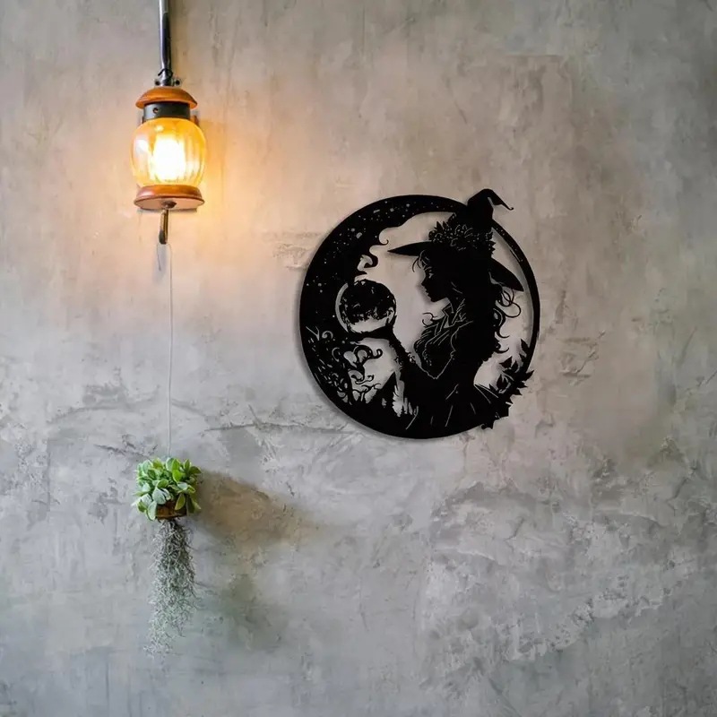국경 현대 마녀 실루엣 금속 벽 조각-미스터리 판타지 마법 벽 아트 데코