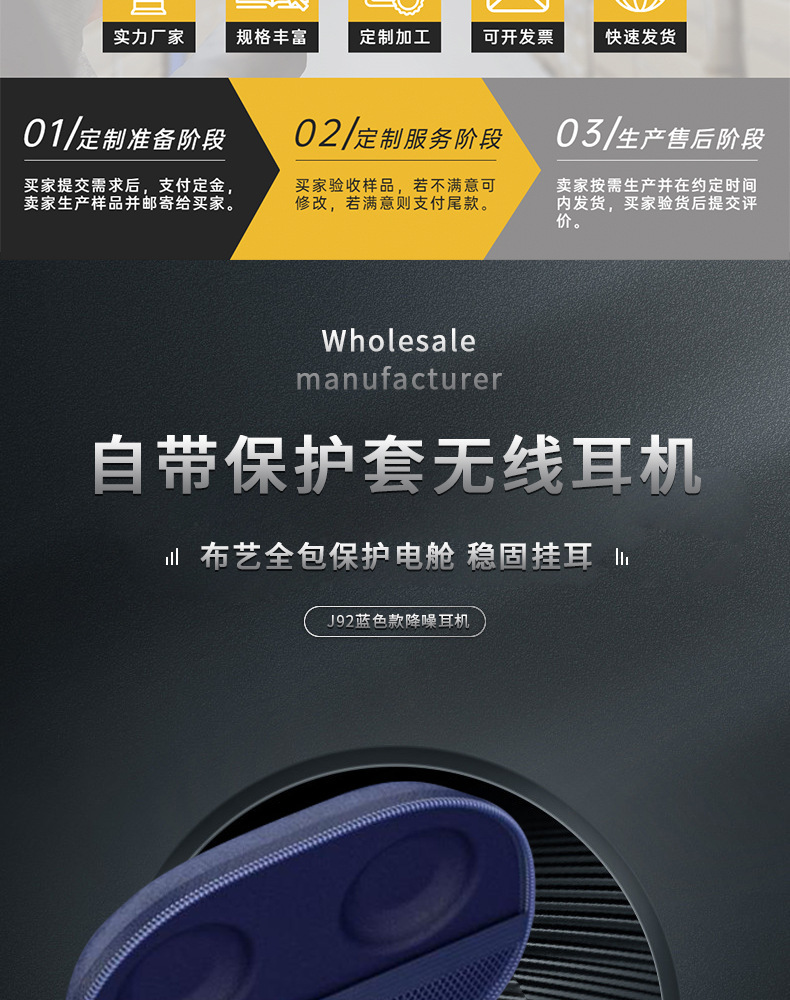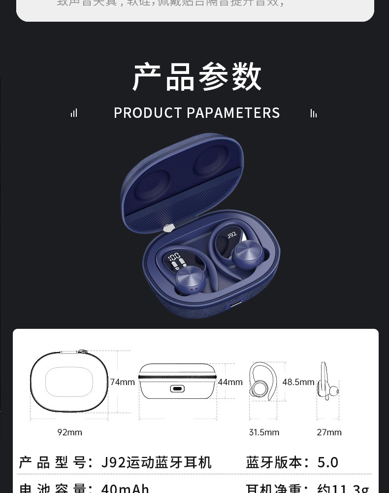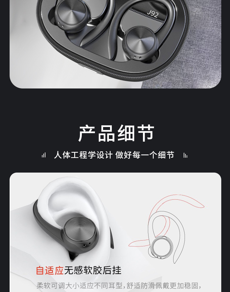 J92 블루투스 이어폰 tws 귀걸이형 무선 스포츠 듀얼 이어폰 노이즈 캔슬링 공장 도매 스포츠 스타일스토어 가기
