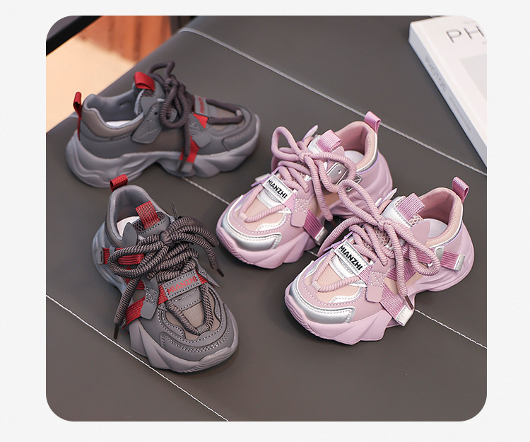 소녀 가죽 운동화 레이스 업 2024 가을 새로운 어린이 중 큰 어린이 런닝 슈즈와 소프트 단독 소년의 트렌디 한 싱글 슈즈
