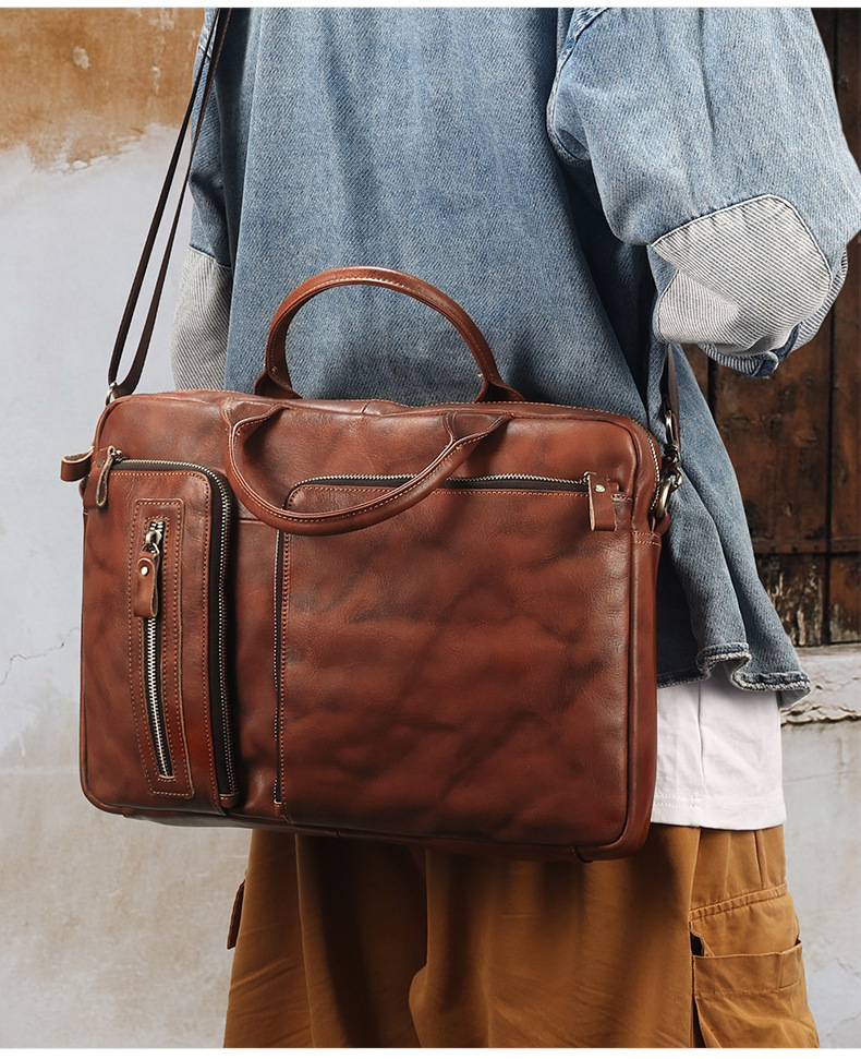 정품 가죽 남성 가방 야채 탄닝 가죽 서류 가방 하이 엔드 남성 가방 크로스 바디 백 15.6 인치 컴퓨터 가방 비즈니스 핸드백
